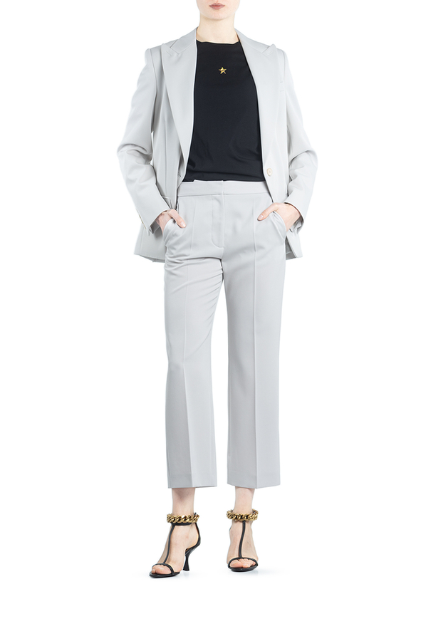 - Штани бежеві прямі, укорочені, косі кишені