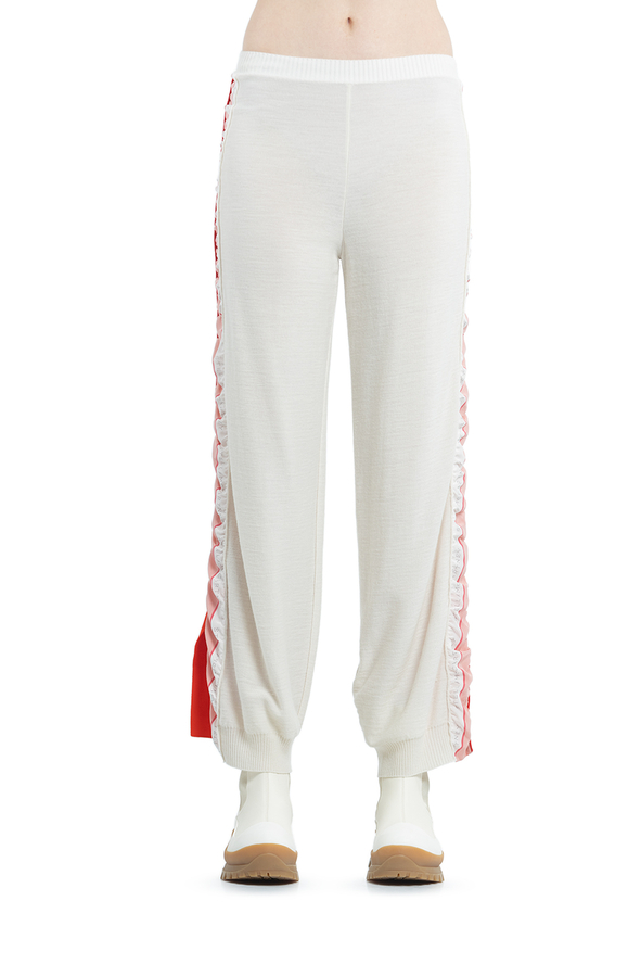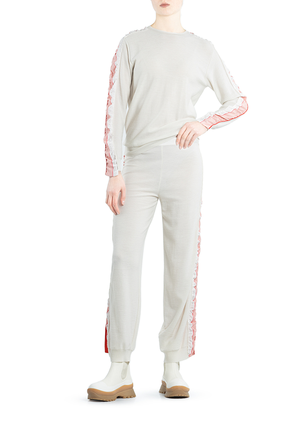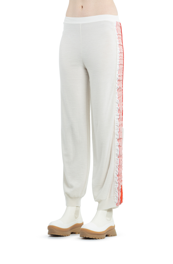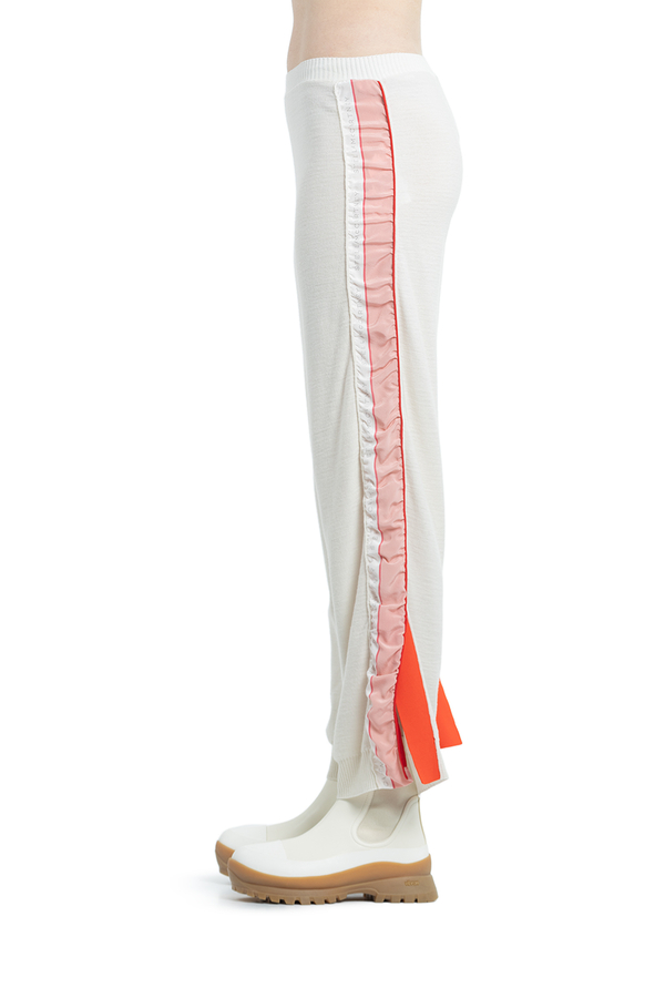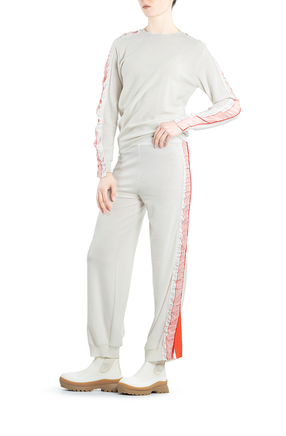 - Штани бежеві трикотажні широкі, рожеві шовкові лампаси