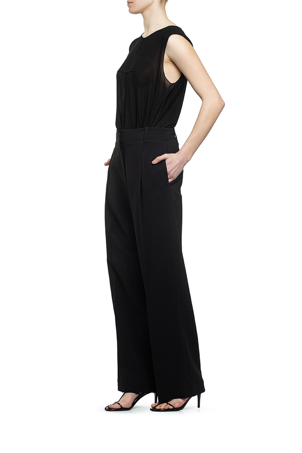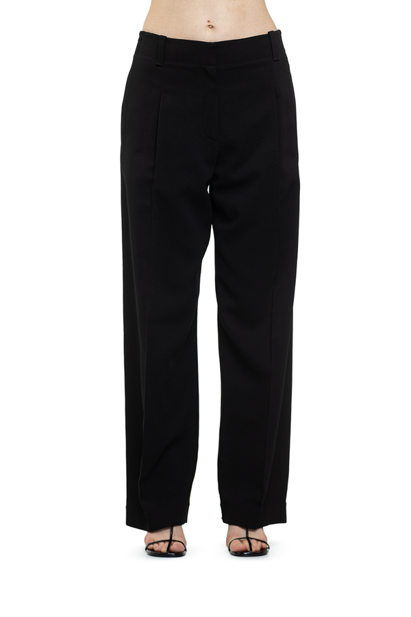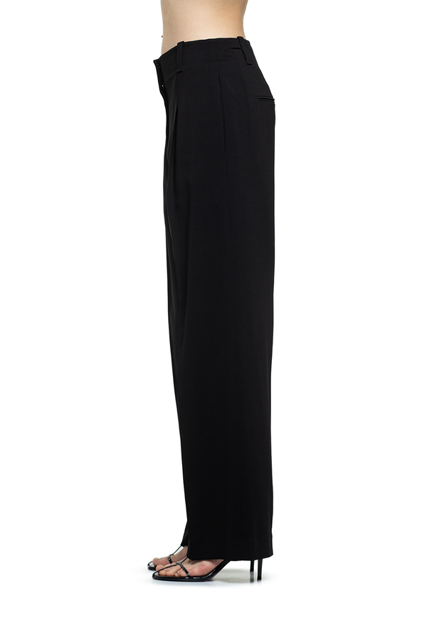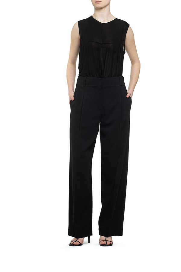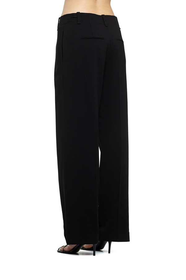 - Штани зі складками спереду, шлевки для ременя, застібка-блискавка, вставні бокові та задні прорізні кишені