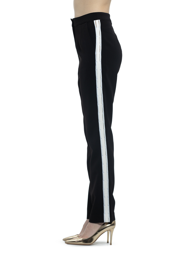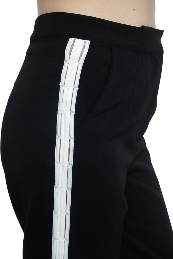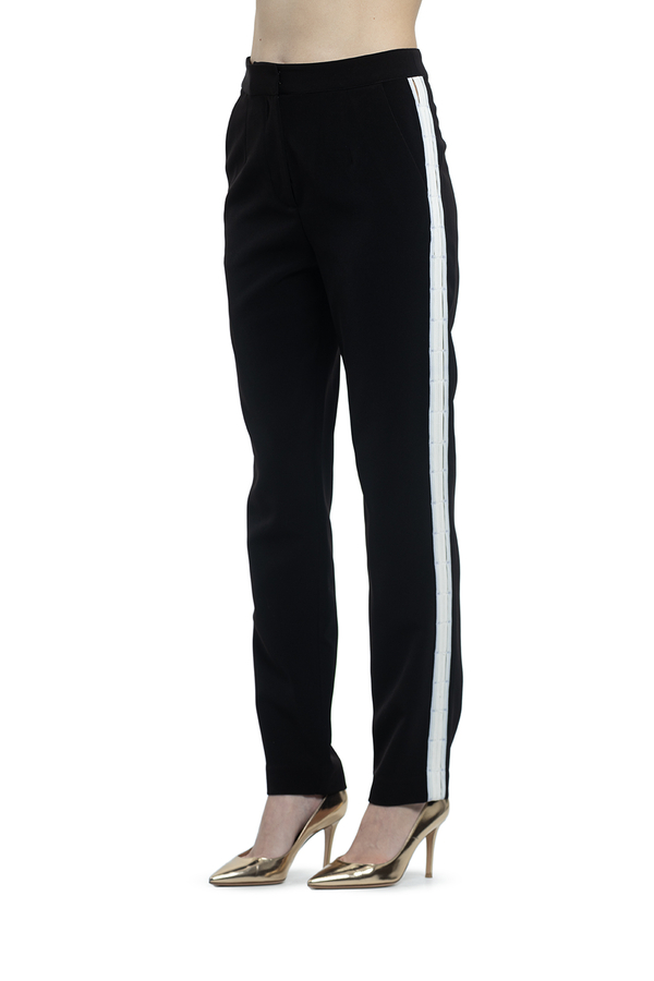 - Штани прямого крою з білими лампасами.