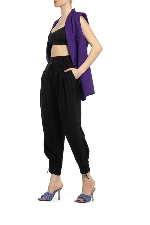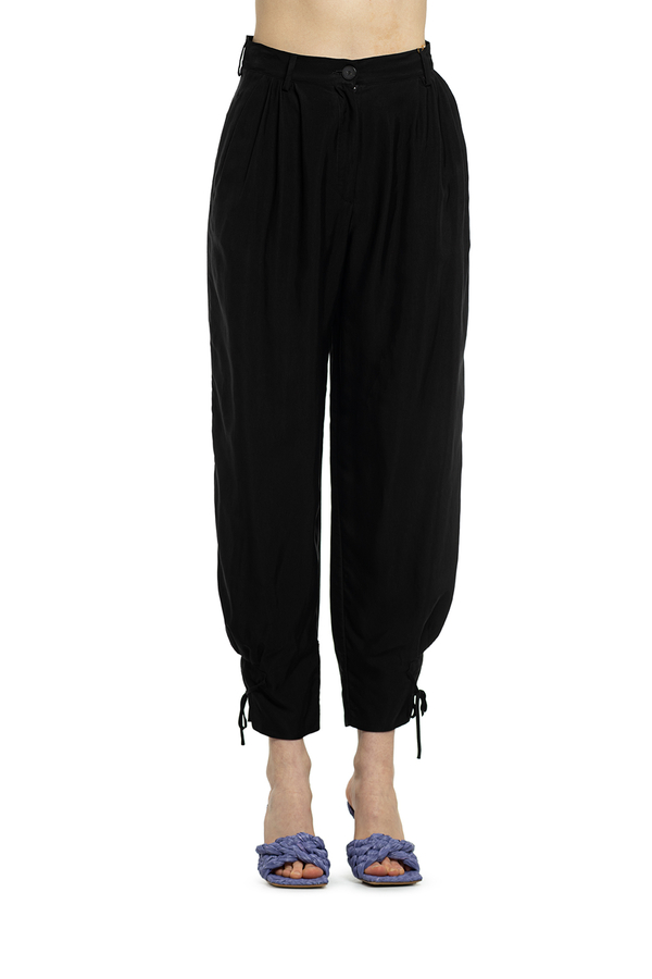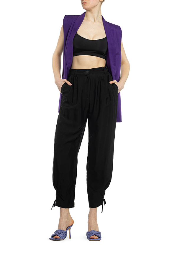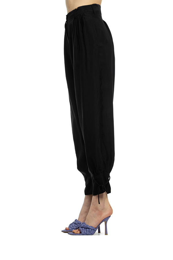 - Штани з віскози і купро. Висока талія, зав'язки на щиколотках.