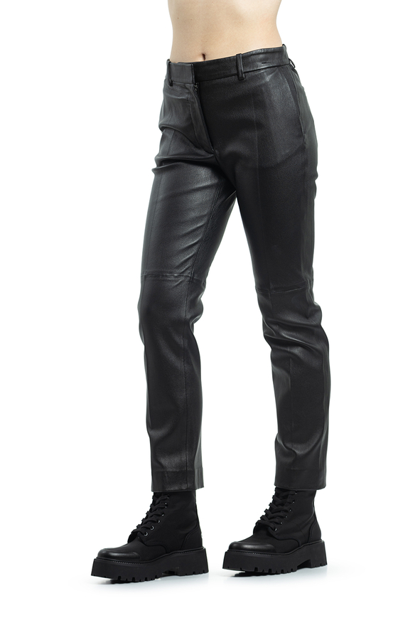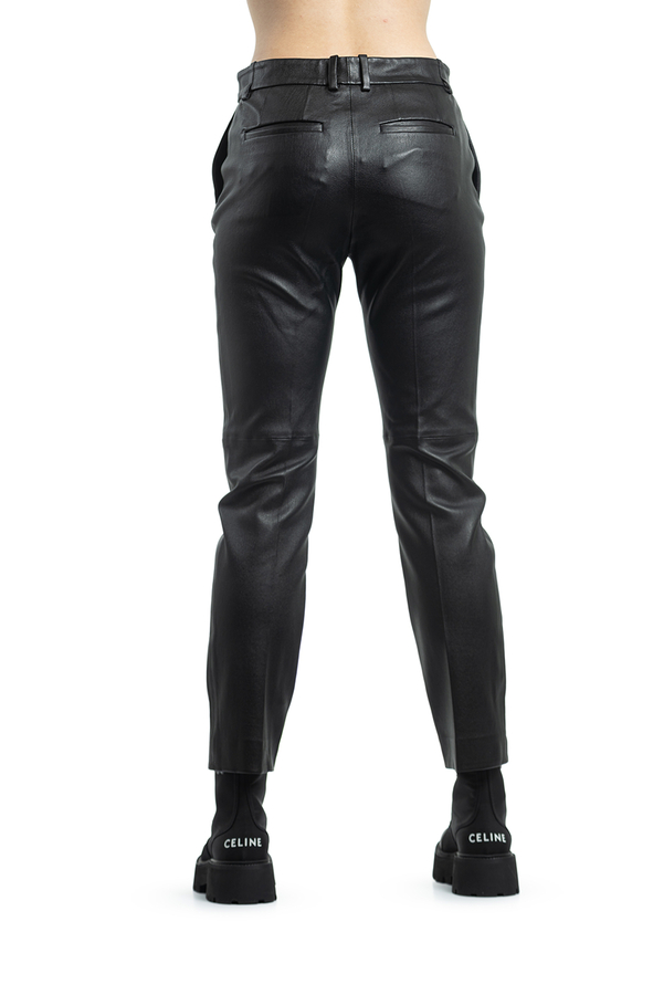 - Штани шкіряні укорочені зі стрілками, петлі для ременя, прорізні кишені