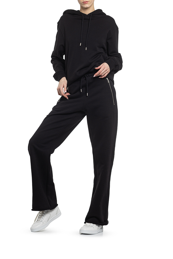 - Спортивні штани широкого крою. Зав'язка на куліску зверху, дві бічні кишені на блискавках.