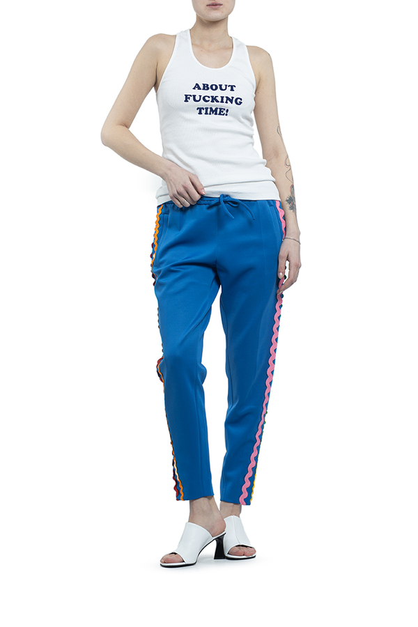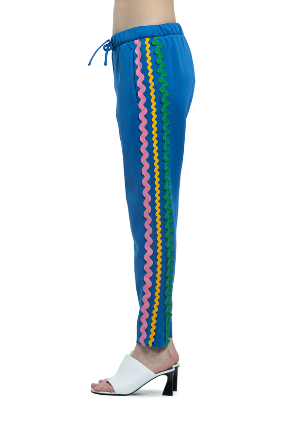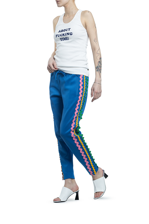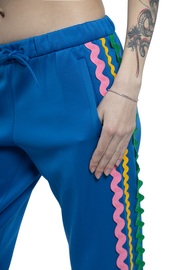 - Штани з еластичної бавовни з лампасами з боків.