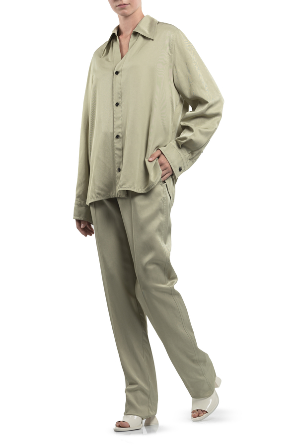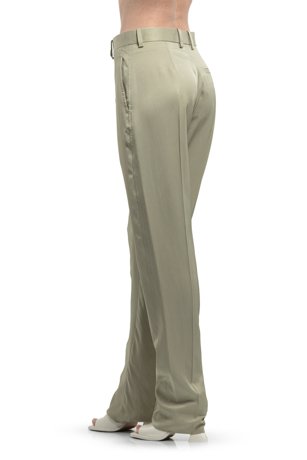 - Прямі штани зі складками, дві прорізні кишені по боках