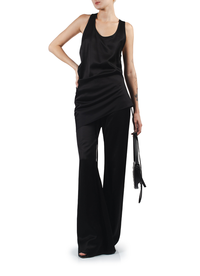 - Штани з еластичним поясом на шнурку, петлі для ременя, по боках дві врізні кишені, дві накладні кишені ззаду