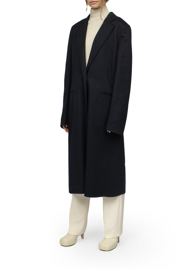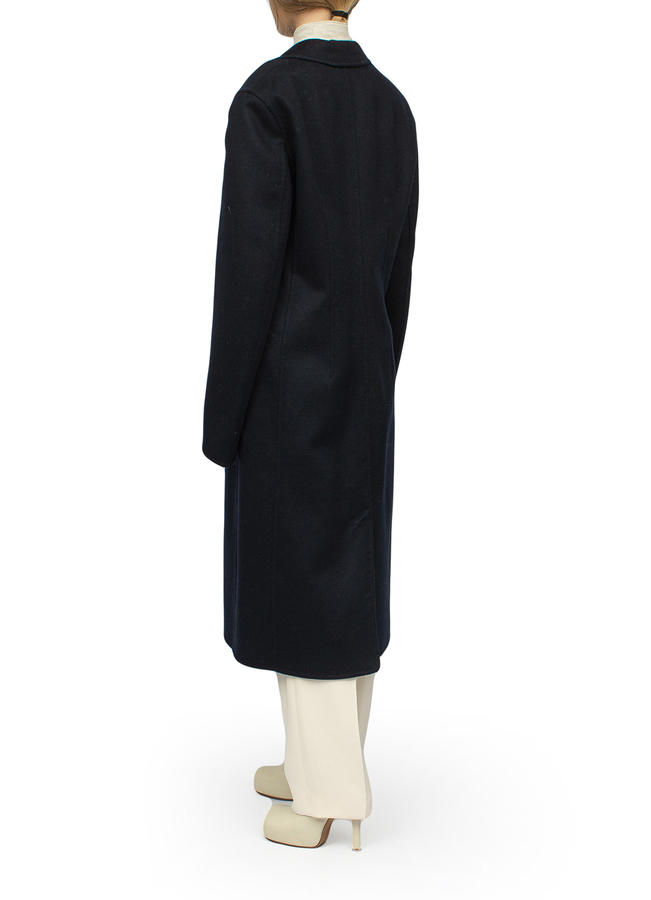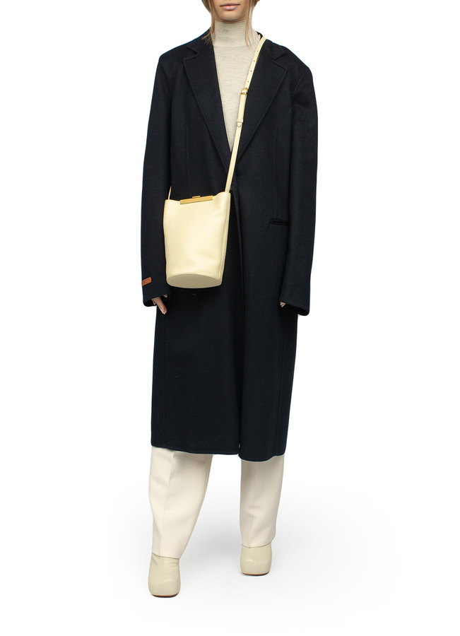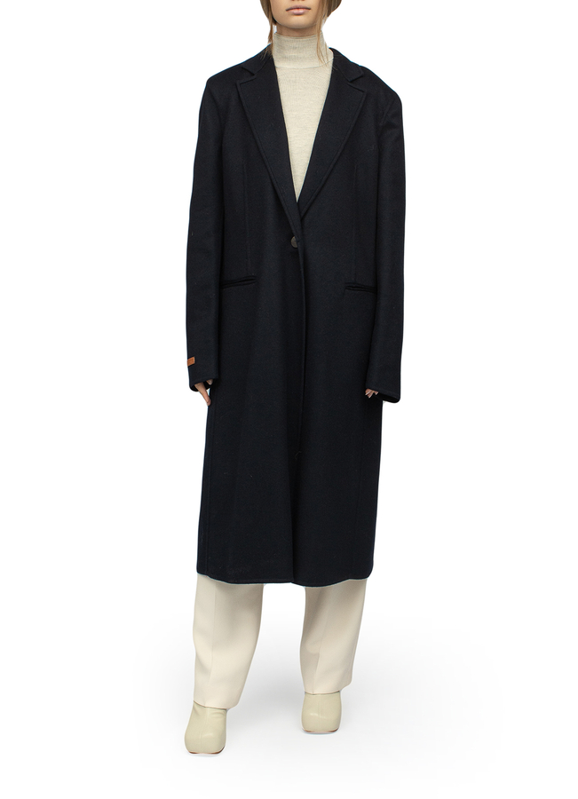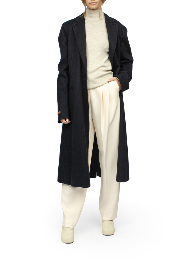 - Однобортное пальто из шерсти и кашемира. С боковыми карманами, приталенное, застежка на пуговицы LOEWE. Рельефная вкладка из телячьей кожи LOEWE.