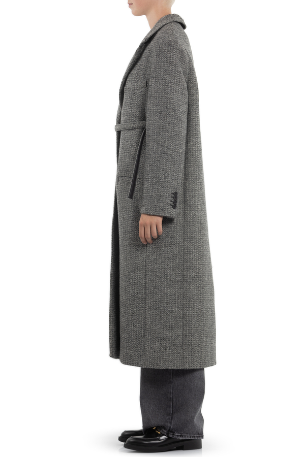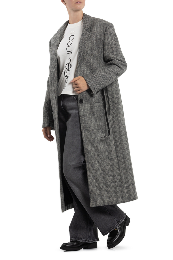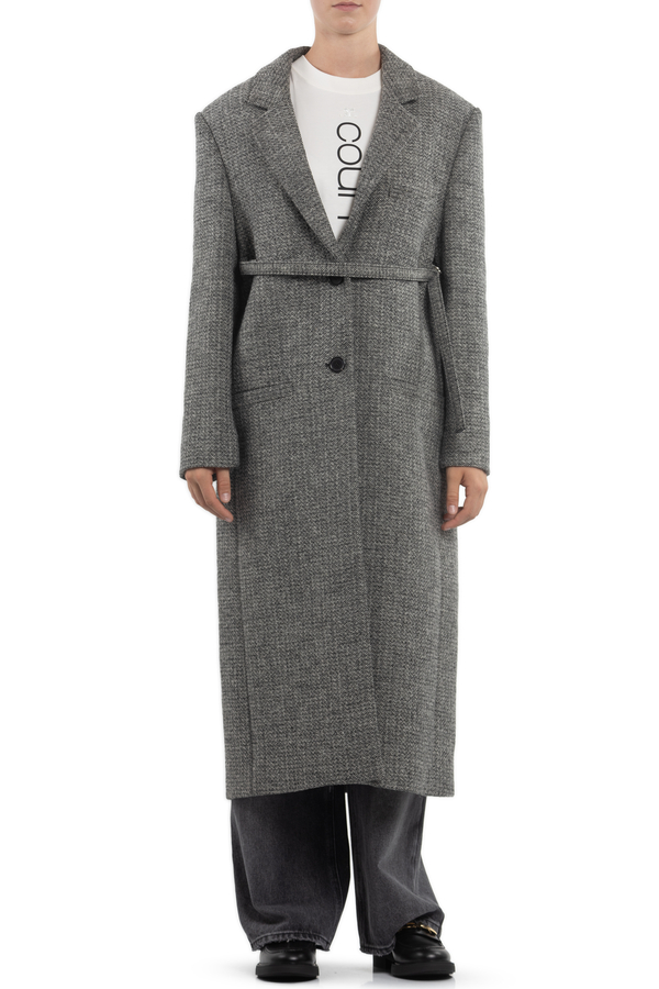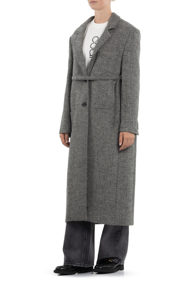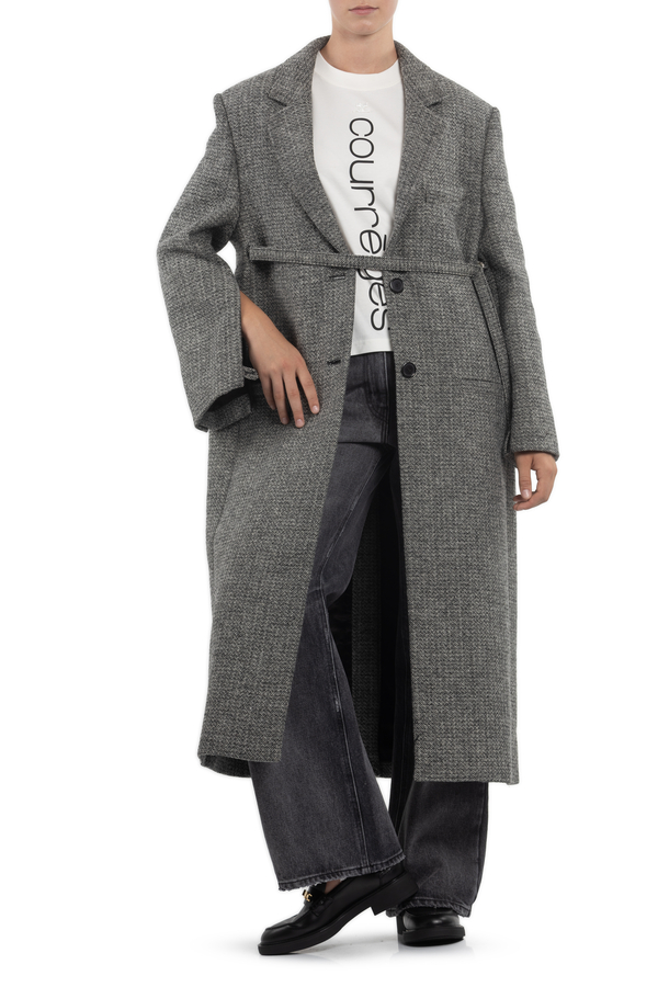 - Пальто з ремінцями, застібка на гудзики спереду, одна нагрудна та дві бокові прорізні кишені, манжети на ґудзиках, нашивка з логотипом позаду