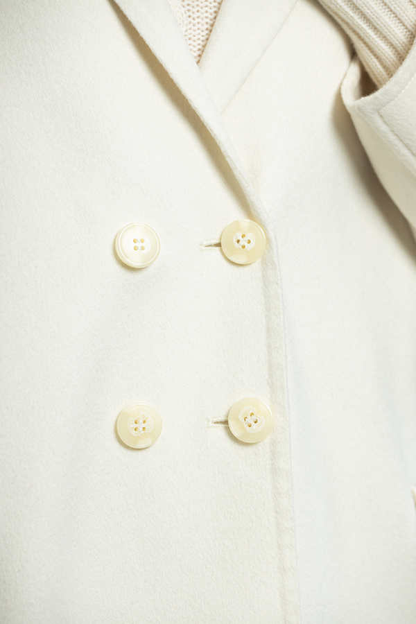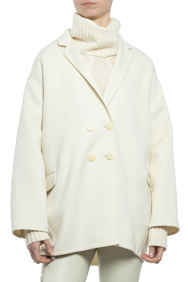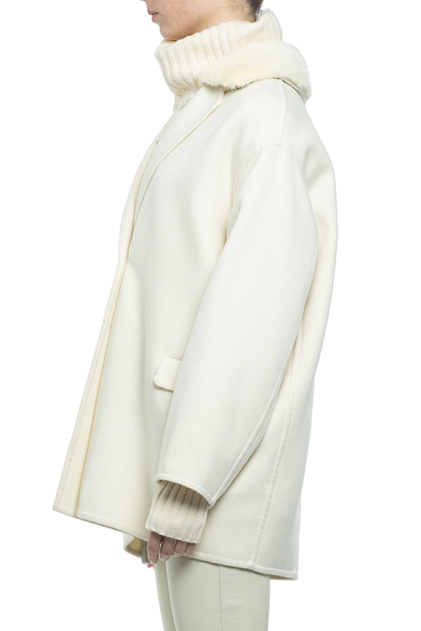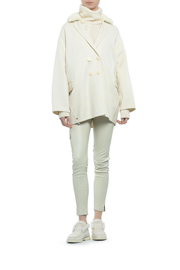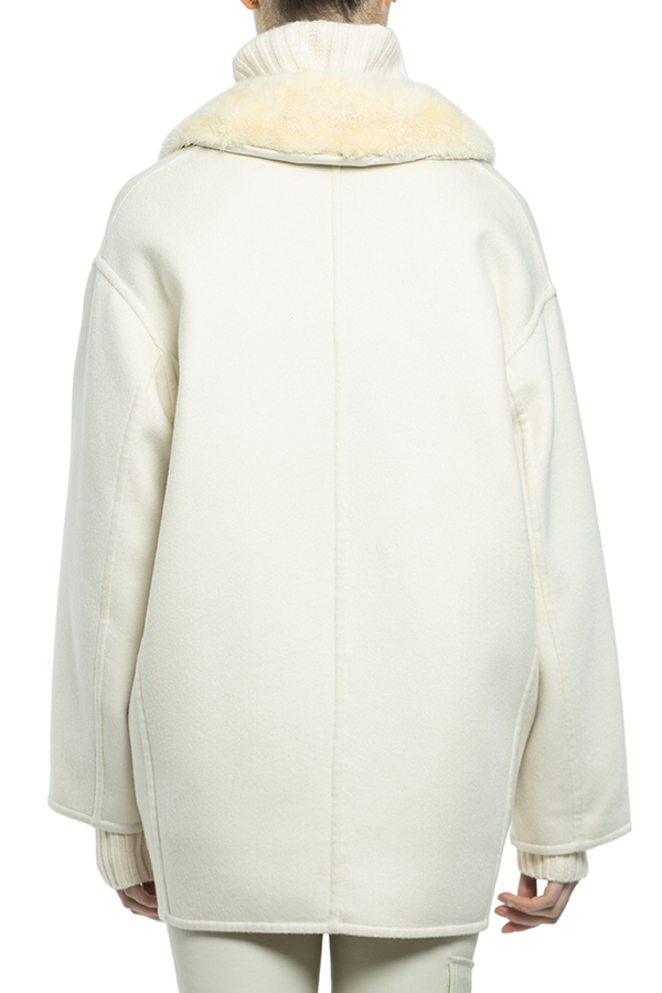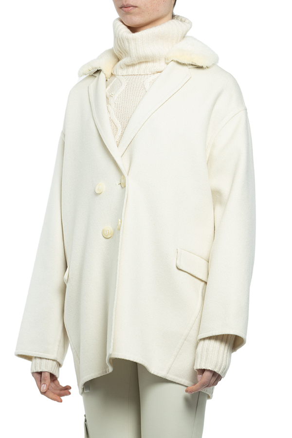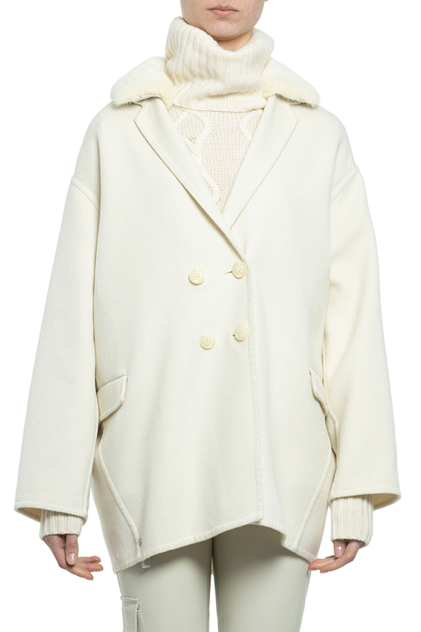 - Двубортное короткое пальто с отстегивающимся воротником из меха норки.