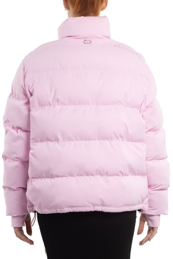 - Пуховик стандартного крою, ворот-стійка, низ на кулісі, спереду застібка-блискавка та кнопки, по боках дві прорізні кишені