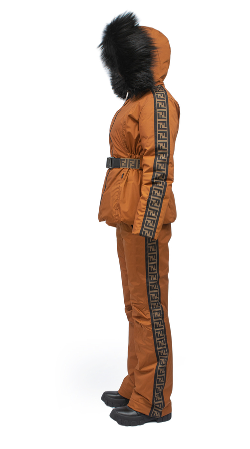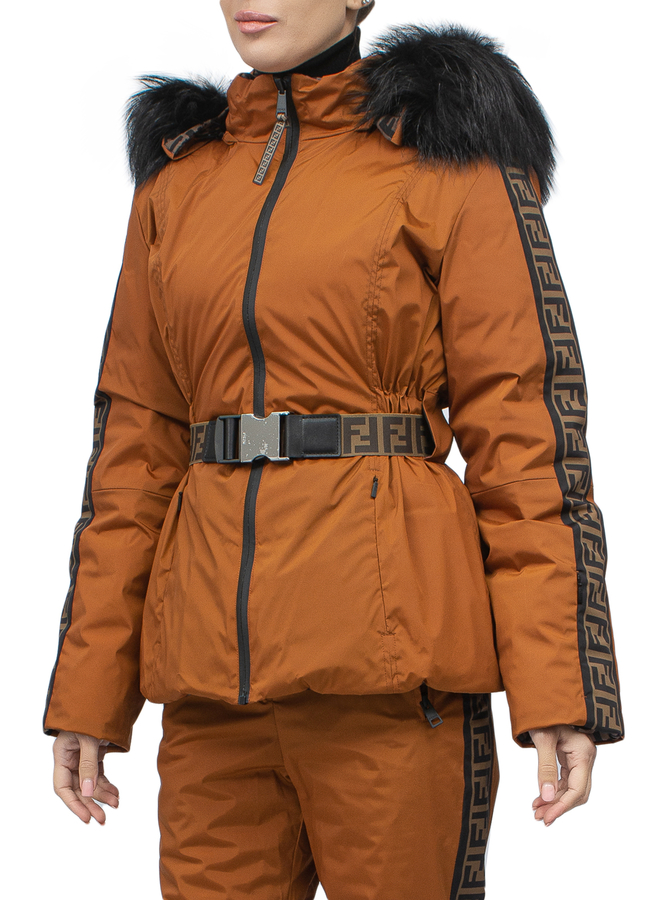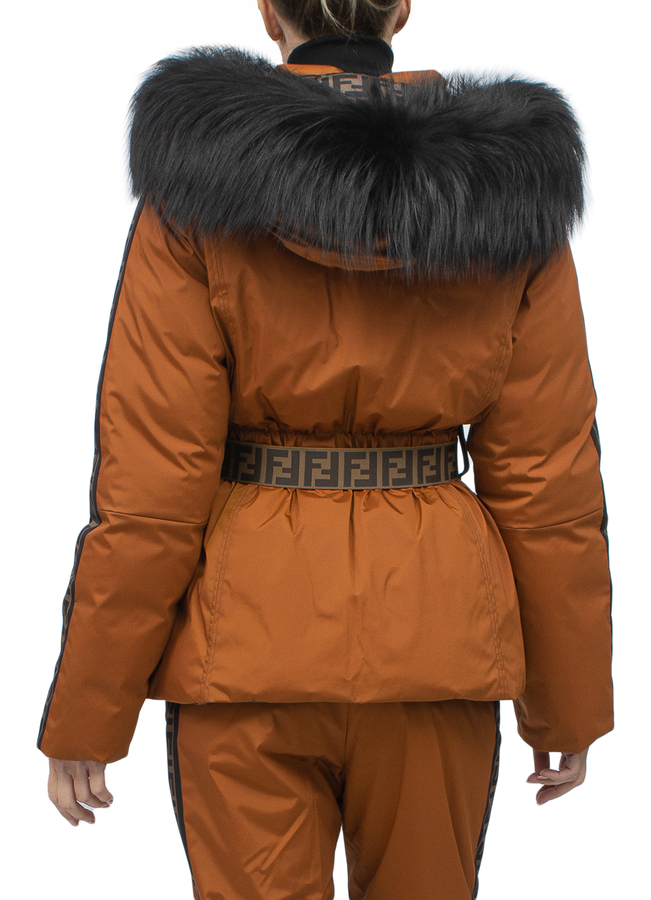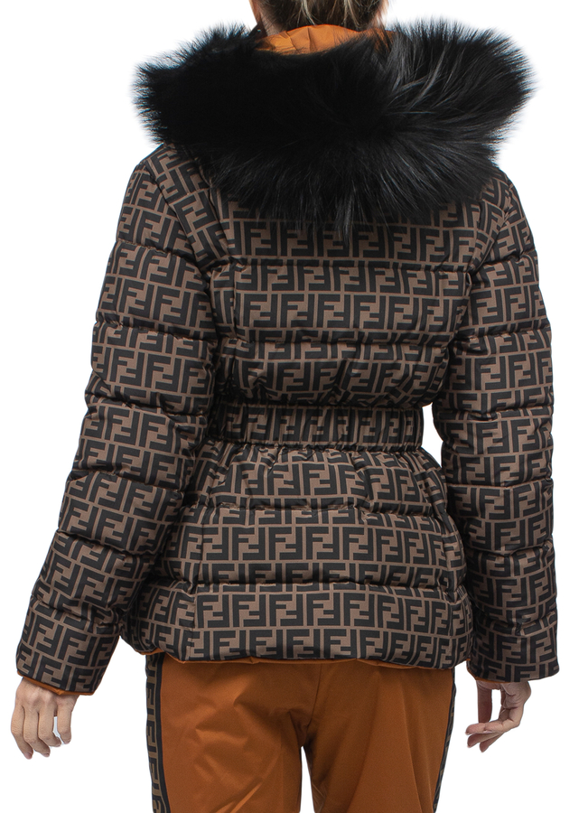 - Пуховик двусторонний с капюшоном с лисьим мехом. Модель из тонкого прочного полиамида, утепление легким пуховым слоем.