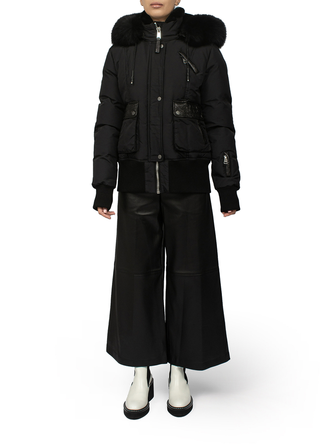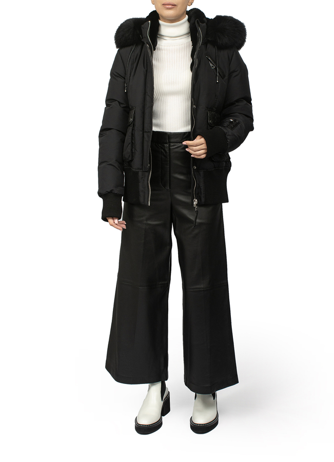- Длинная куртка с капюшоном. Подкладка из меха кролика и песка.