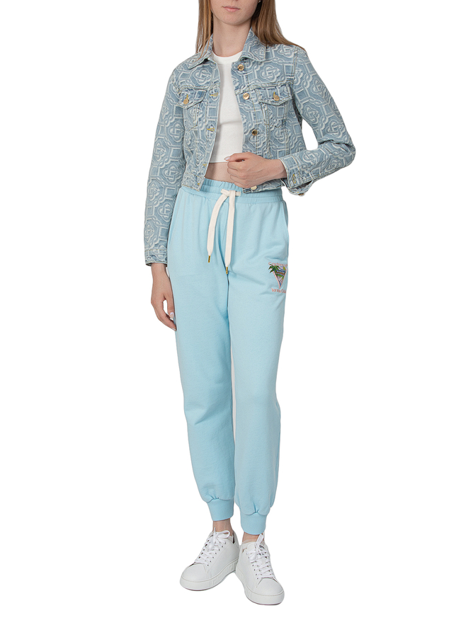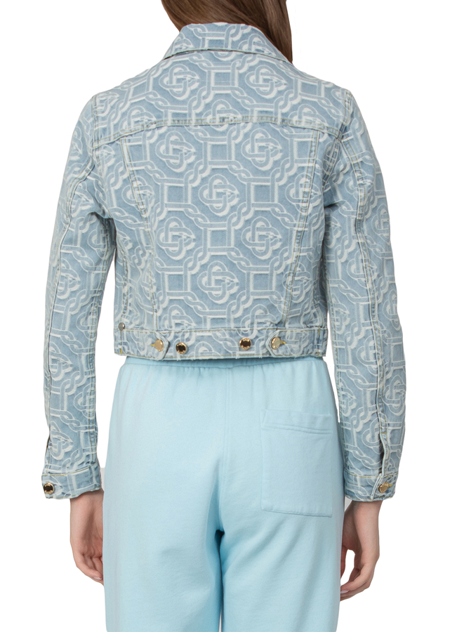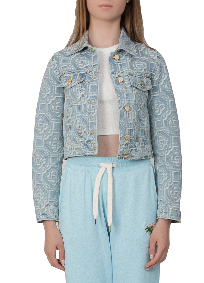 - Джинсова куртка з візерунком логотипа, застібки-гудзики, дві нагрудні кишені