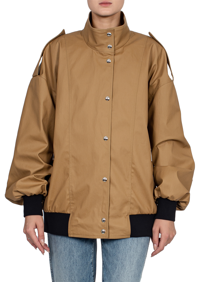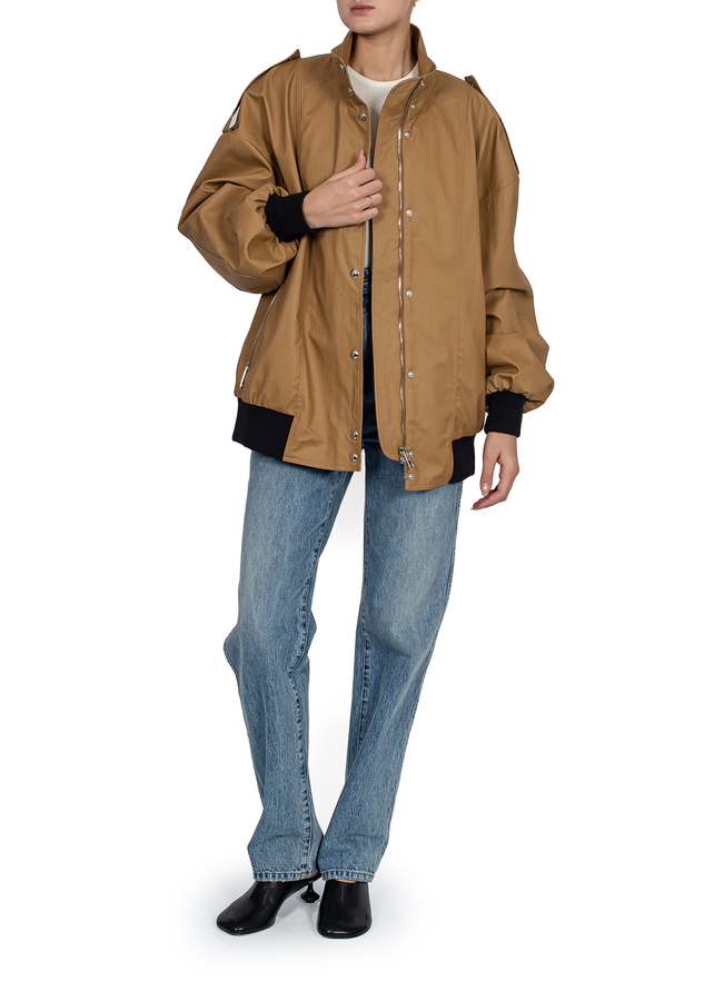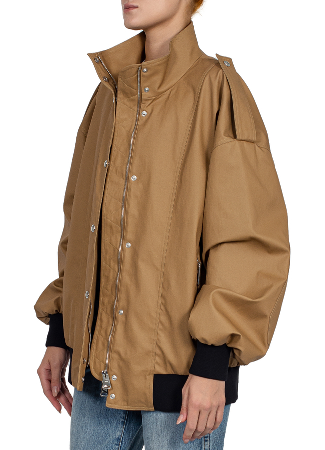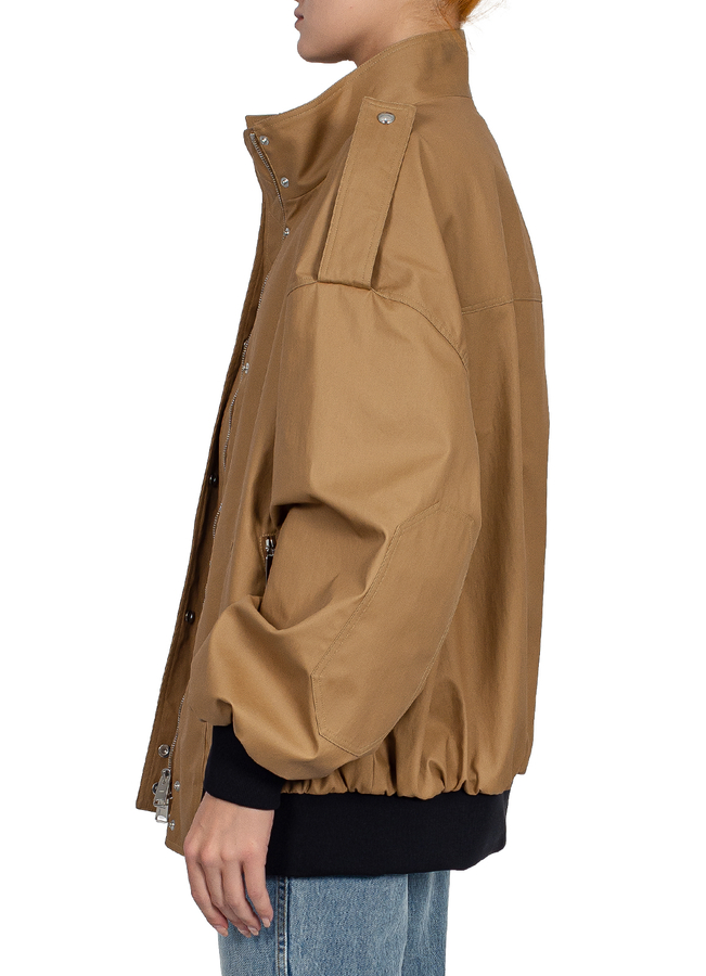 - Бомбер з погонами, дві бокові кишені на блискавках, застібка на кнопки та блискавку з подвійним бігунком