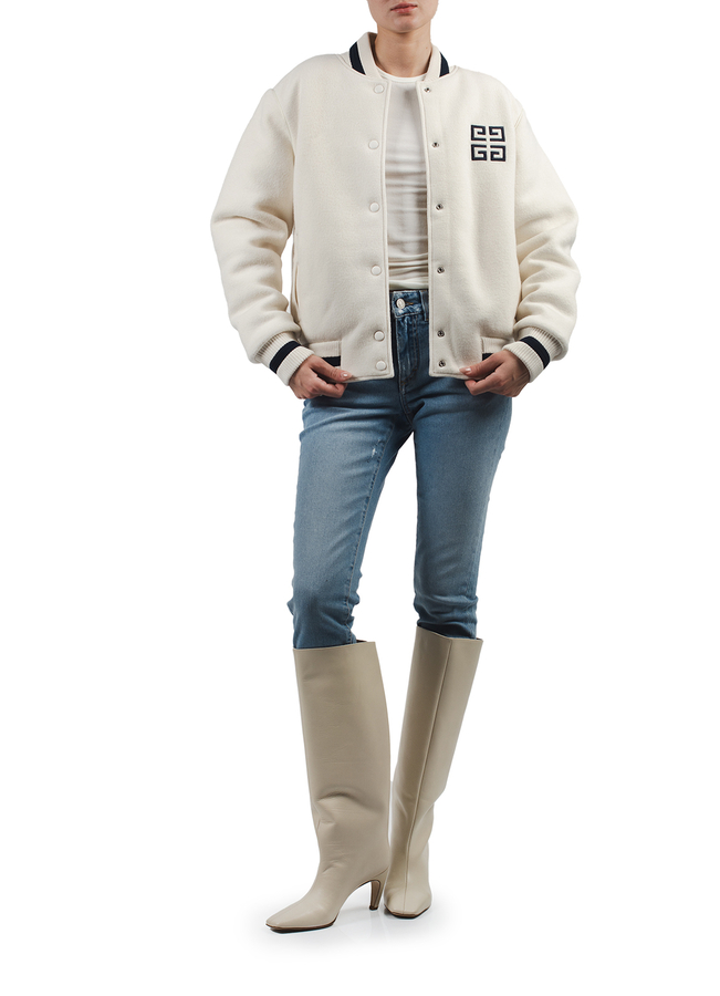 - Бомбер с эластичным воротником, низом и манжетами, застежка на кнопки спереди, два прорезных кармана по бокам, принт логотипа на груди