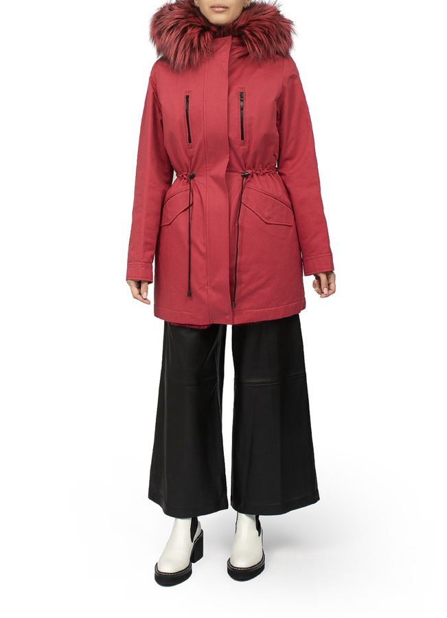 - Парка с отстегивающимся пушным жилетом внутри.