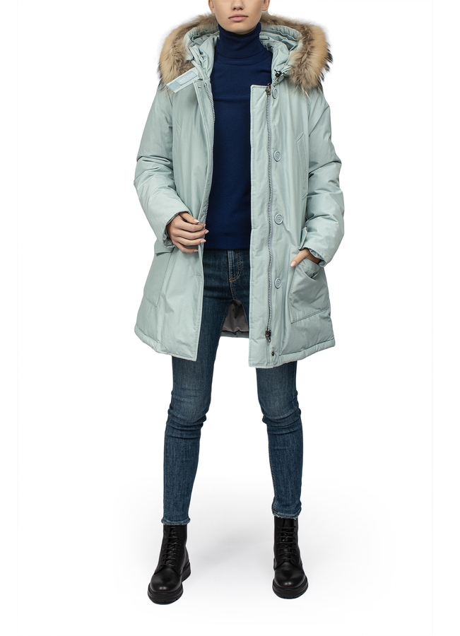 - Зимняя парка средней длины с капюшоном с меховой отделкой. Застёгивается на молнию с ветрозащитным клапаном на пуговицах и имеет прямой крой. Четыре внешних кармана, два внутренних кармана и шнуры - утяжки в капюшоне.