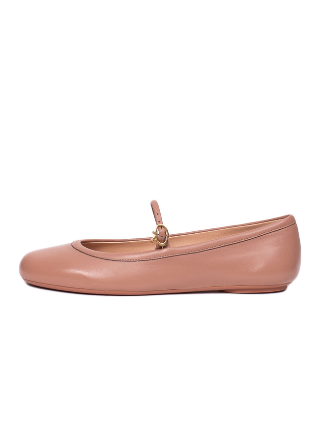 - Кожаные балетки с круглым носком, плоской подошвой, сверху пряжка с золотой фурнитурой, фирменная кожаная стелька.