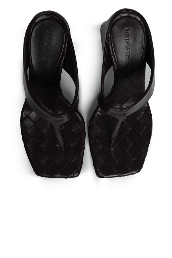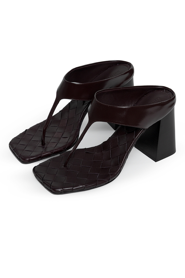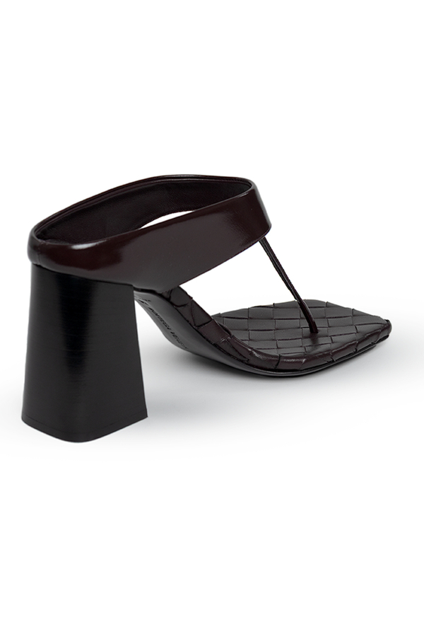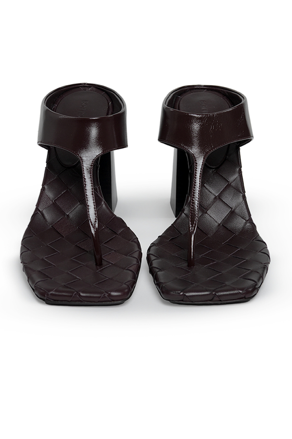 - Открытые босоножки на широких каблуках, стелька с фирменным плетением