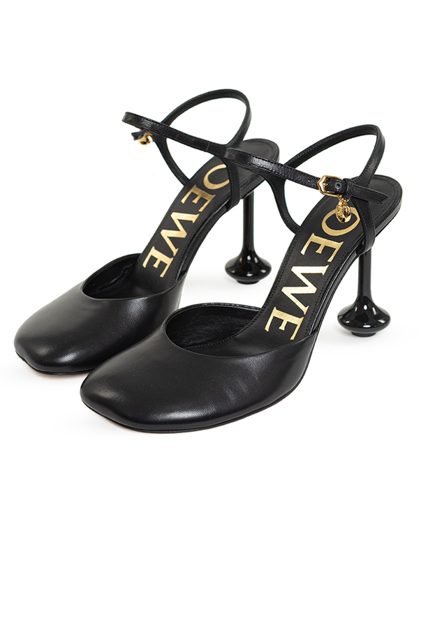 - Кожаные туфли с фирменным носком, ремешок на лодыжке с декором в виде анаграммы Pebble, лакированный подбор Toy, кожаная подошва