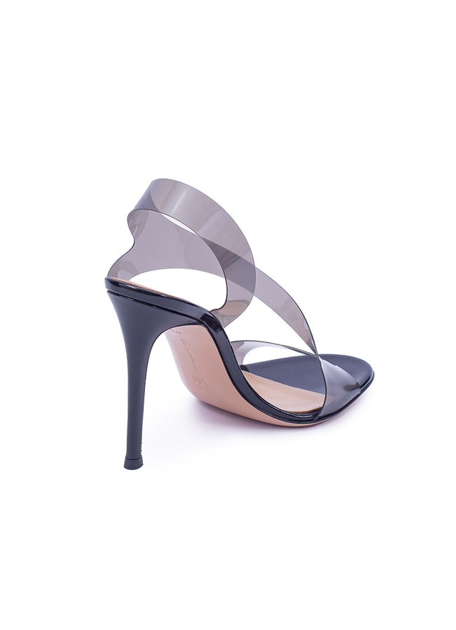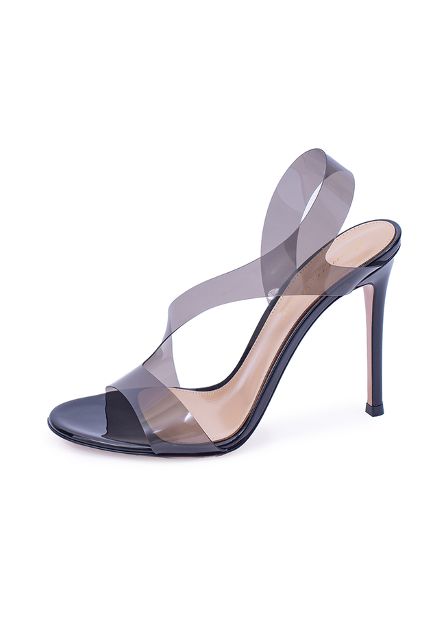 - Кожаные босоножки Metropolis с прозрачными ремешками. На высоком каблуке заостренной формы, открыт носок округлой формы.