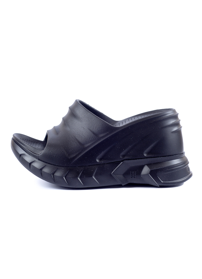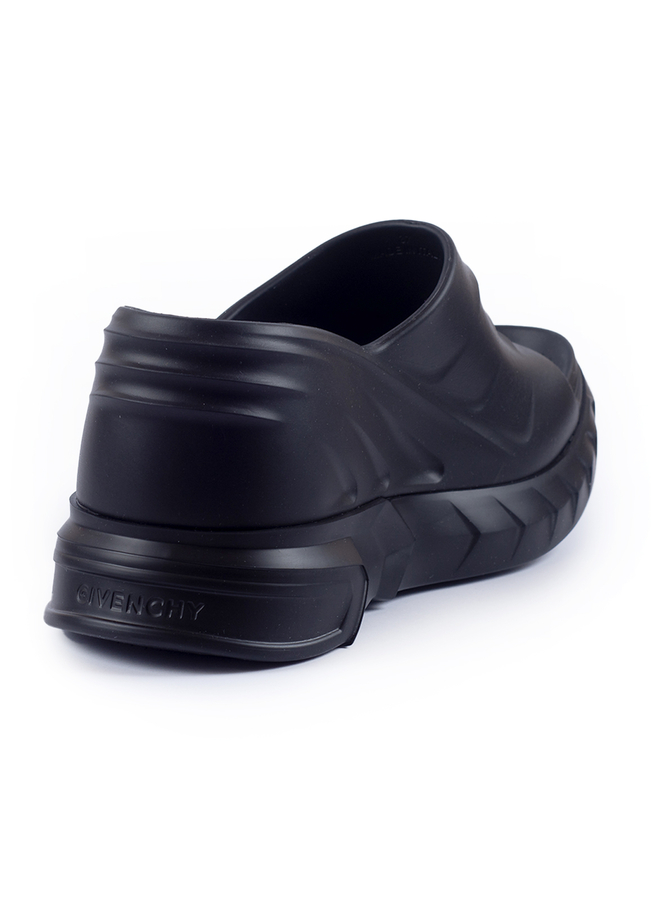 - Резиновые сабо на массивной подошве, закругленный открытый носок, без застежки.
