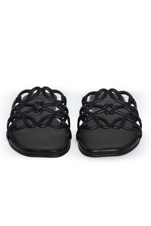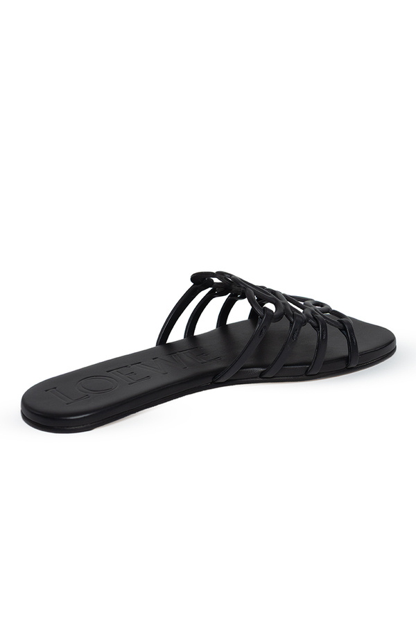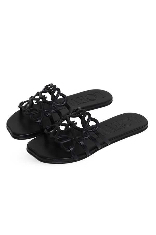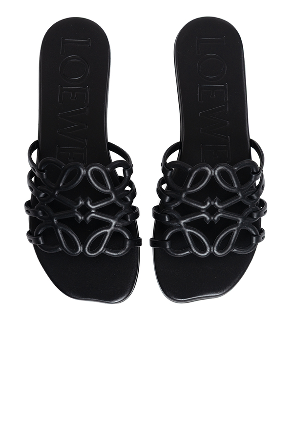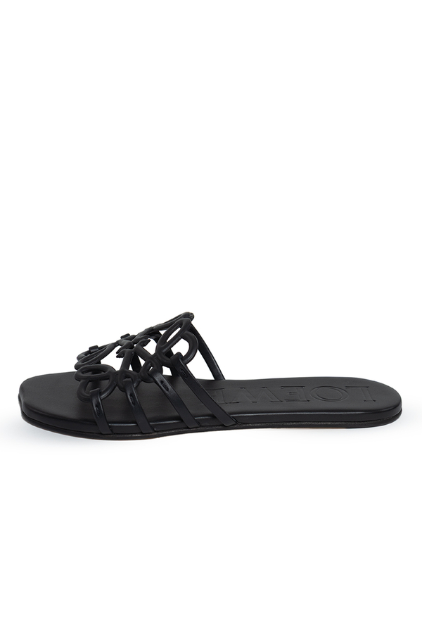 - Шлепанцы с вырезным верхом в виде анаграммы, мягкая кожаная стелька с тисненой надписью LOEWE, резиновая подошва