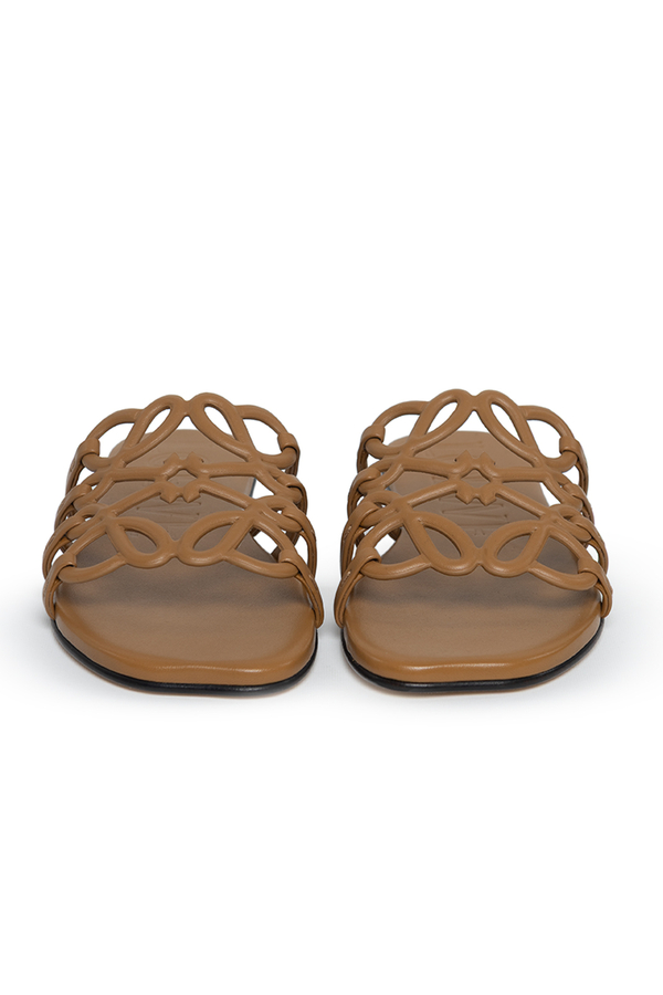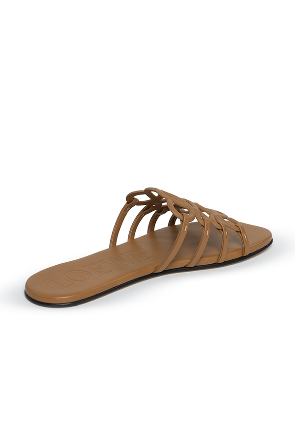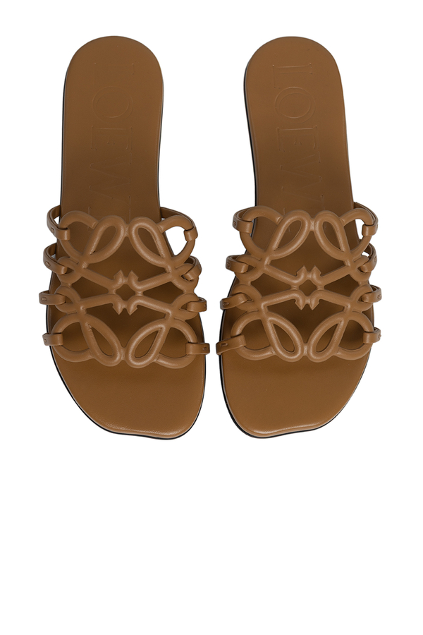 - Шлепанцы с вырезным верхом в виде анаграммы, мягкая кожаная стелька с тисненой надписью LOEWE, резиновая подошва