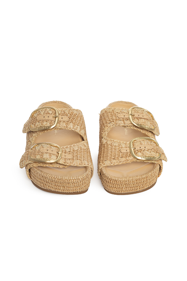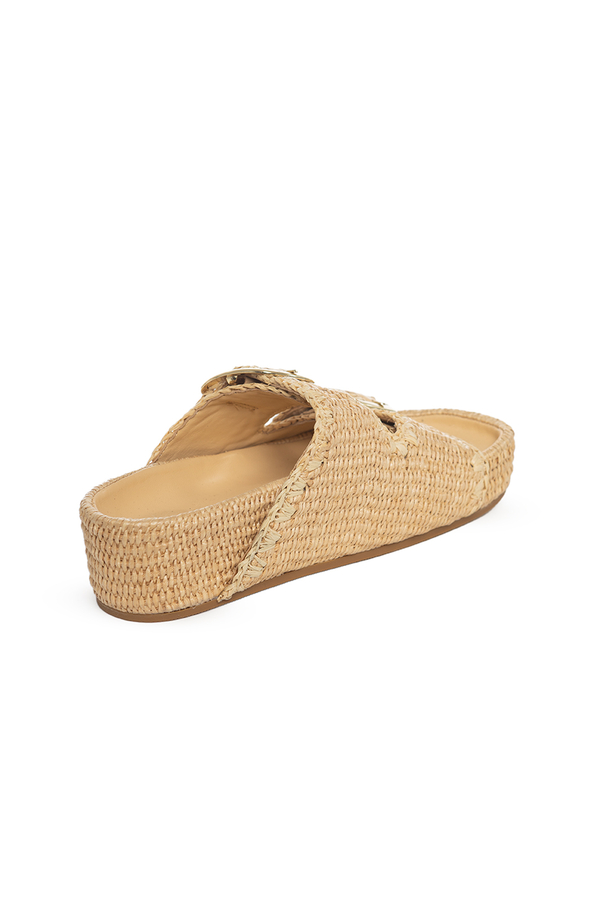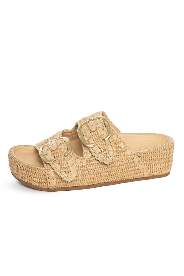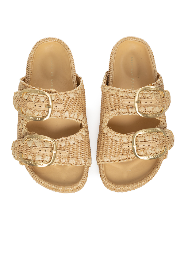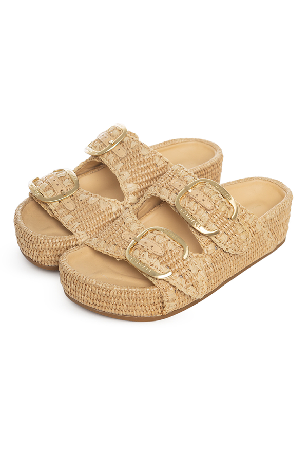 - Шльопанці на платформі з двома ремінцями, відкритий носок, декоративний рядок в тон, великі пряжки з логотипом, м'яка шкіряна устілка, застібки-липучки на ремінцях
