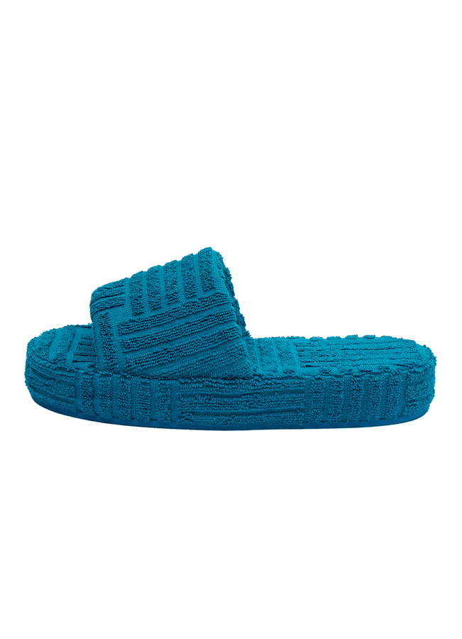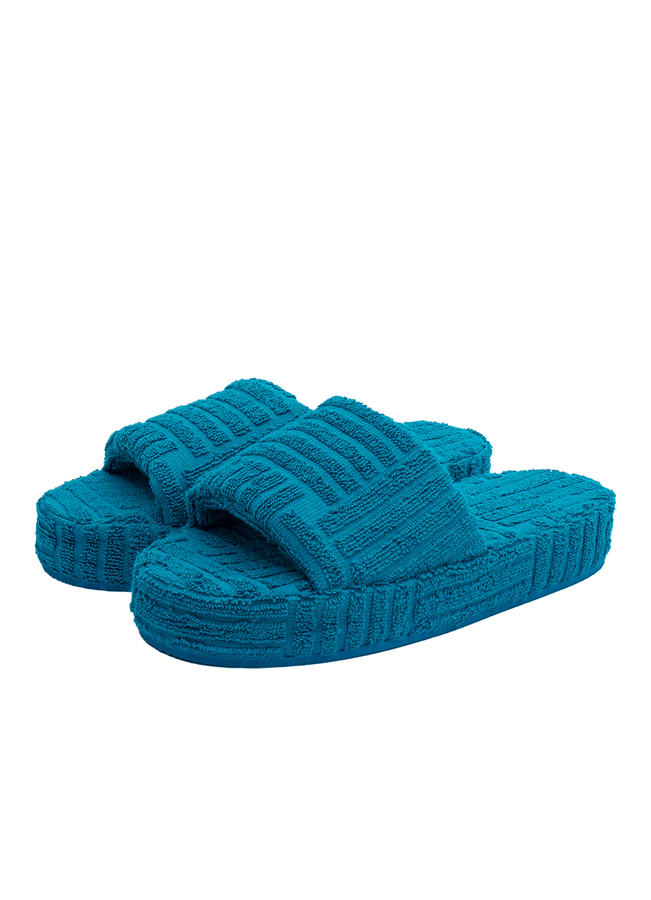 - Текстильные шлепки Resort из махровой фактурной ткани. С протектором на широкой подошве.
