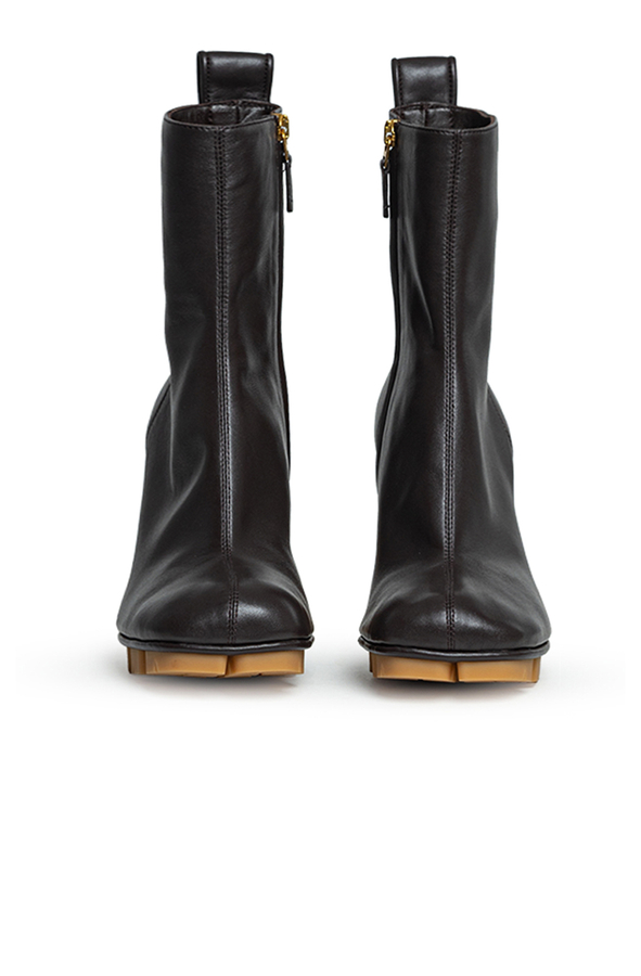 - Кожаные ботильоны, закругленный носок, застежка-молния, фигурная подошва