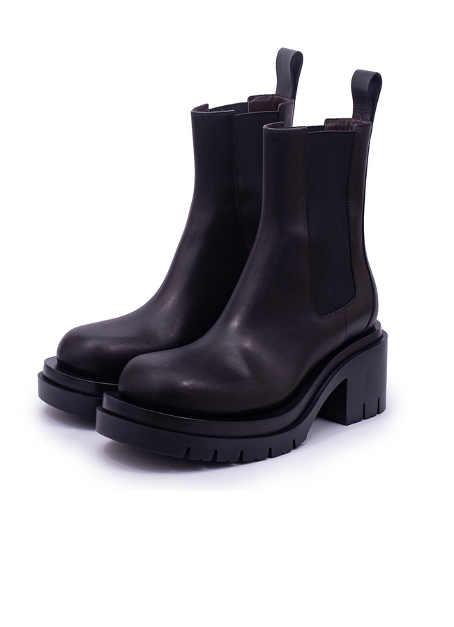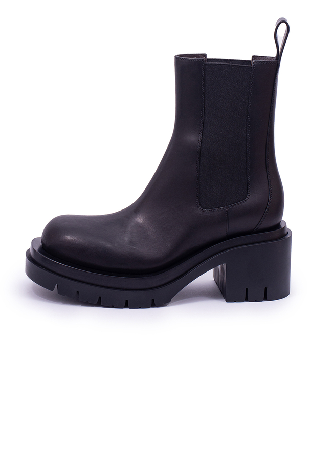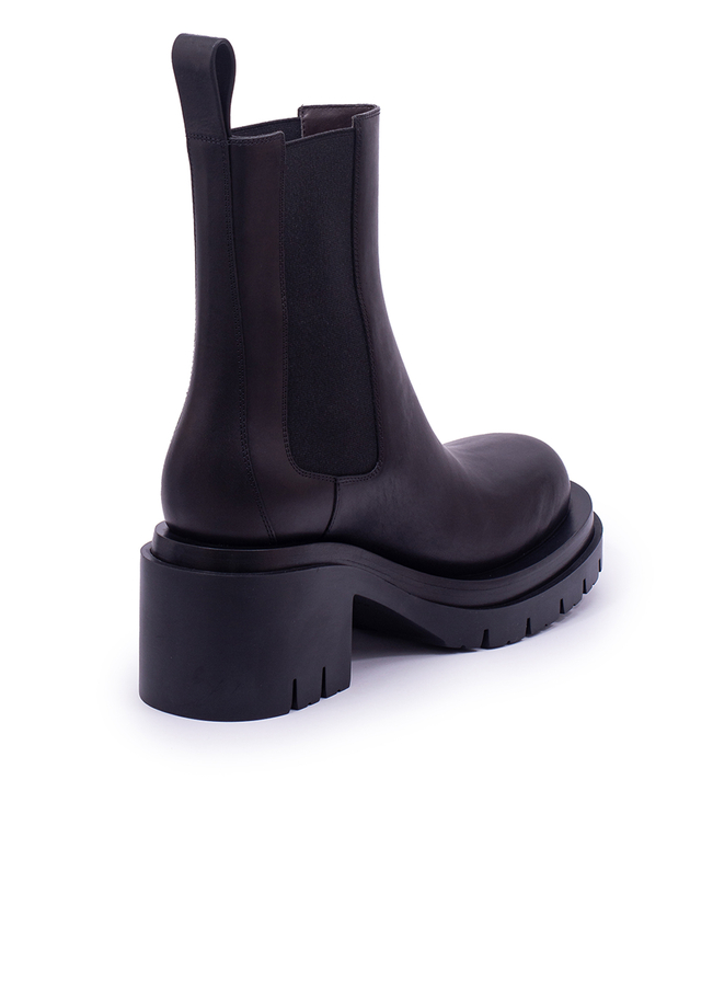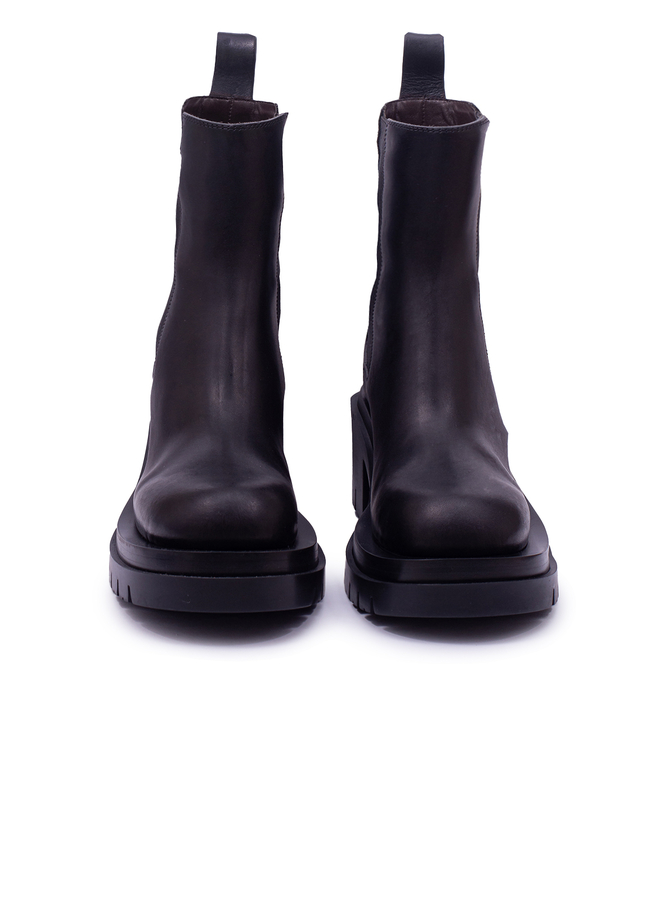 - Ботинки Lug из телячьей кожи. Массивная ребристая подошва и каблук. Круглый носок, боковые эластичные вставки.