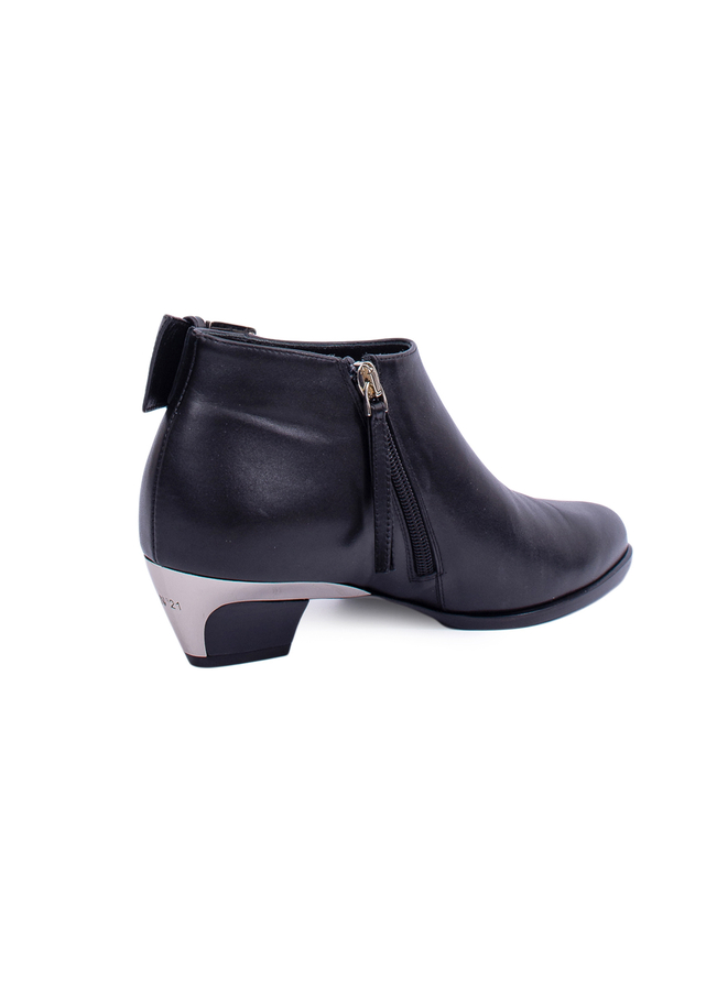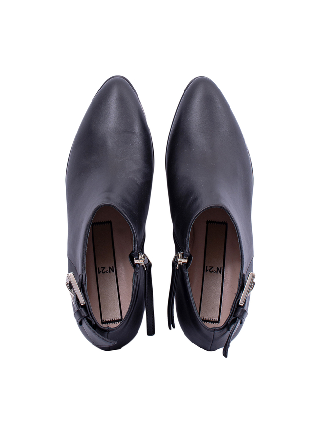 - Кожаные ботильоны с отделкой на каблуке украшением и металлом.
