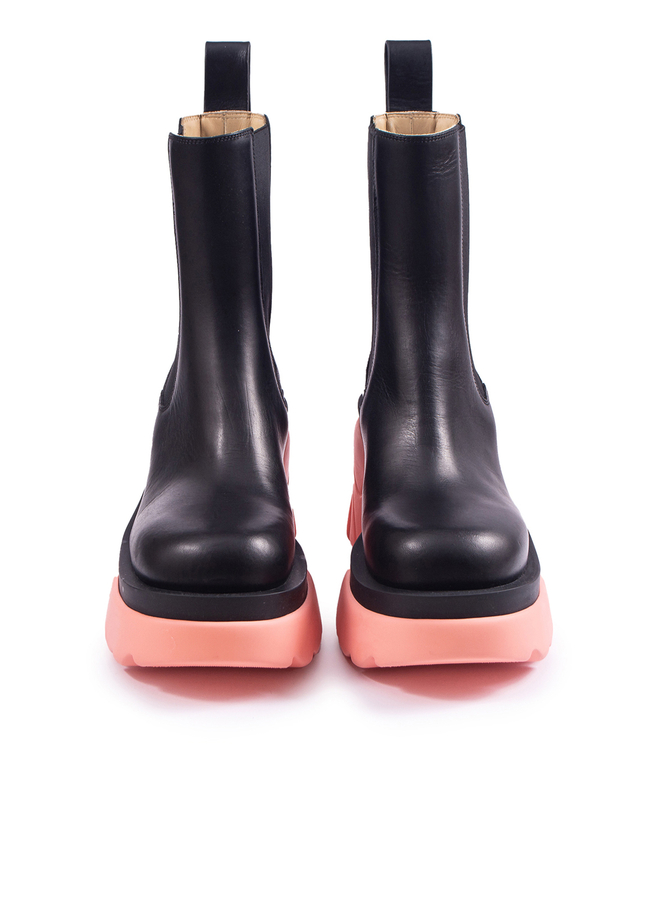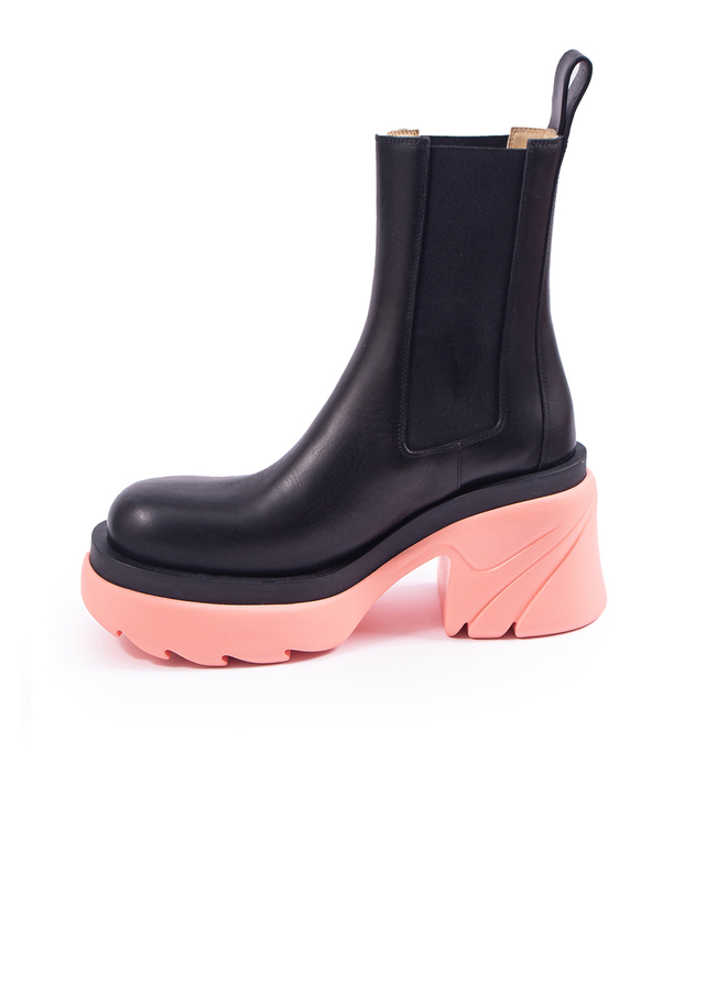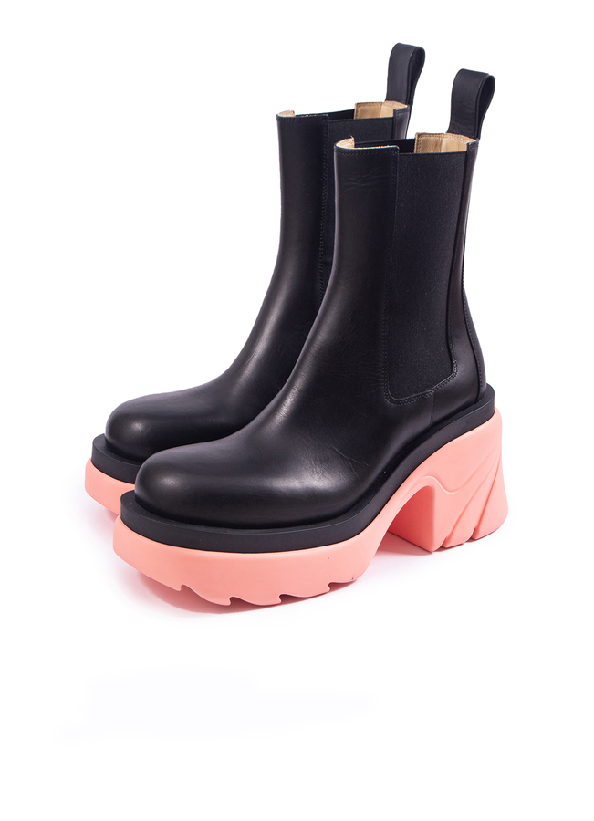 - Ботинки Flash от Bottega Veneta, из кожи с боковыми эластичными вставками и двухцветной подошвой. Гладкая кожа, боковые эластичные вставки, верхний кольцевой ремень, круглая форма носа, резиновая двухцветная подошва.