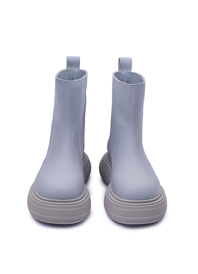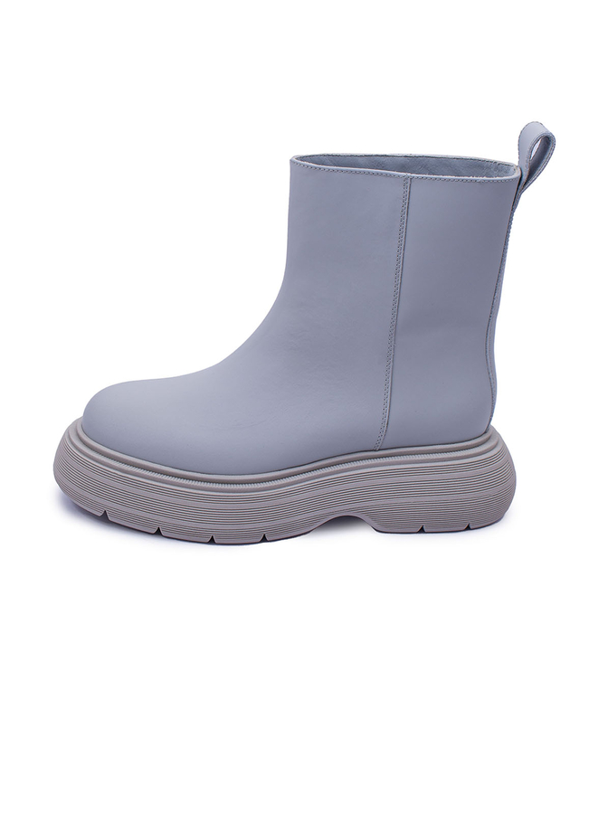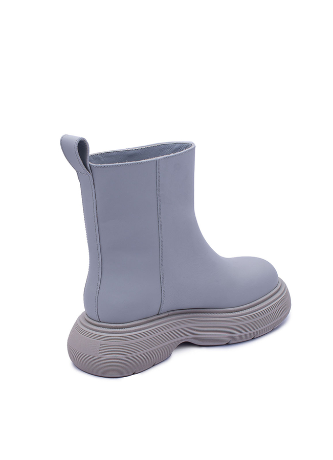 - Кожаные ботинки на высокой ребристой подошве. С круглым носком, без застежки.