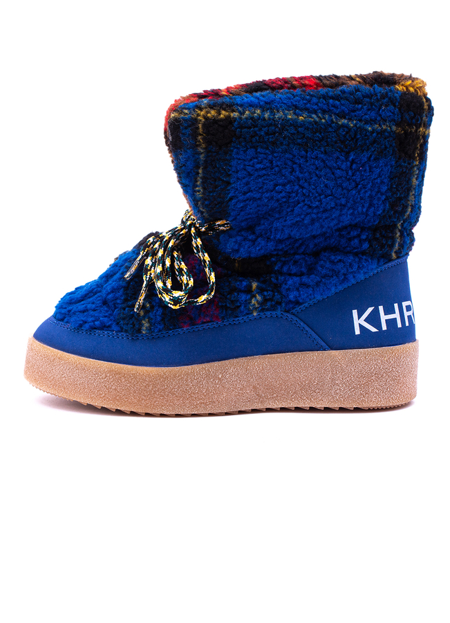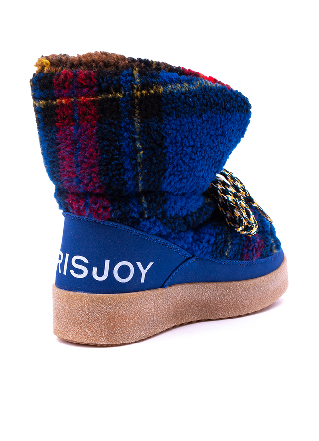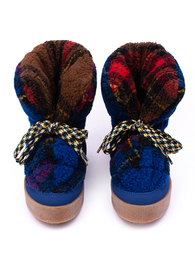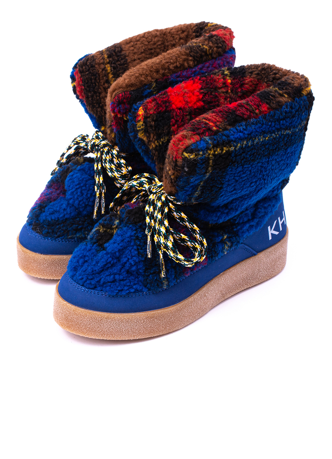 - Мягкие дутые ботинки с принтом в клетку. Плоская резиновая подошва, застежка на шнурках.