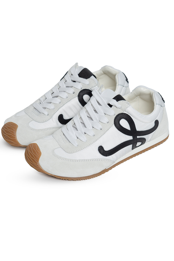 - Кроссовки со шнуровкой спереди, плоская резиновая подошва, тисненый логотип на язычке, фирменный логотип сбоку