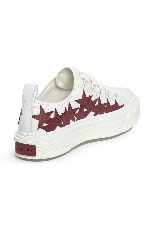 - Кожаные кроссовки, шнуровка спереди, язычок на пятке, фирменные звездочки по бокам, плоская резиновая подошва с логотипом.