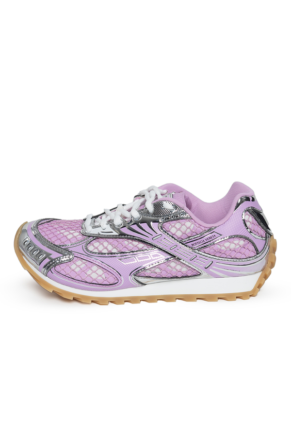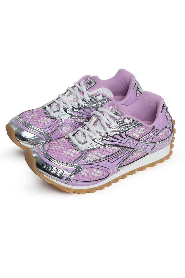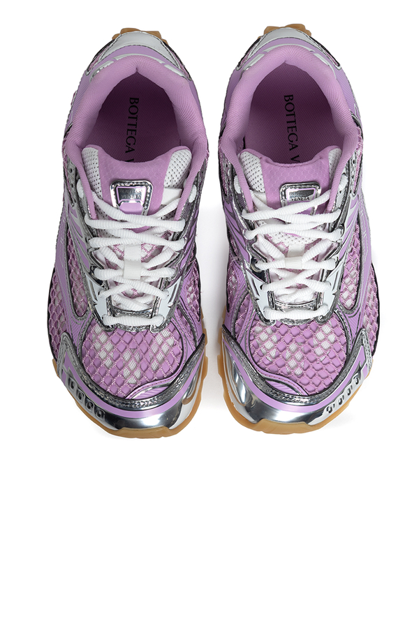 - Кроссовки с эффектом металлик, сетчатые вставки, спереди шнуровка, резиновая подошва