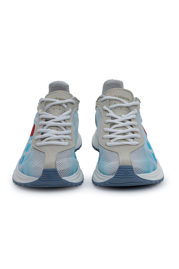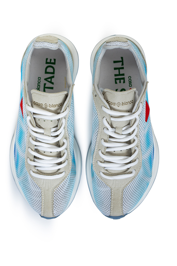 - Кроссовки на шнуровке, сетчатая вставка, на язычке и по бокам фирменный логотип