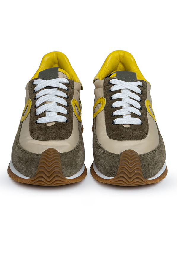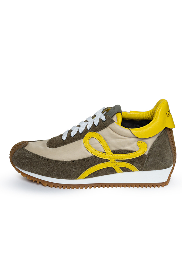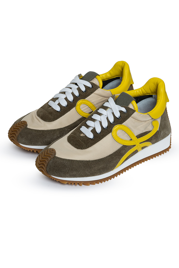 - Кроссовки на шнуровке из нейлона и замши, фирменная резиновая подошва, монограмма сбоку, тисненая анаграмма на язычке, LOEWE на вкладке на пятке