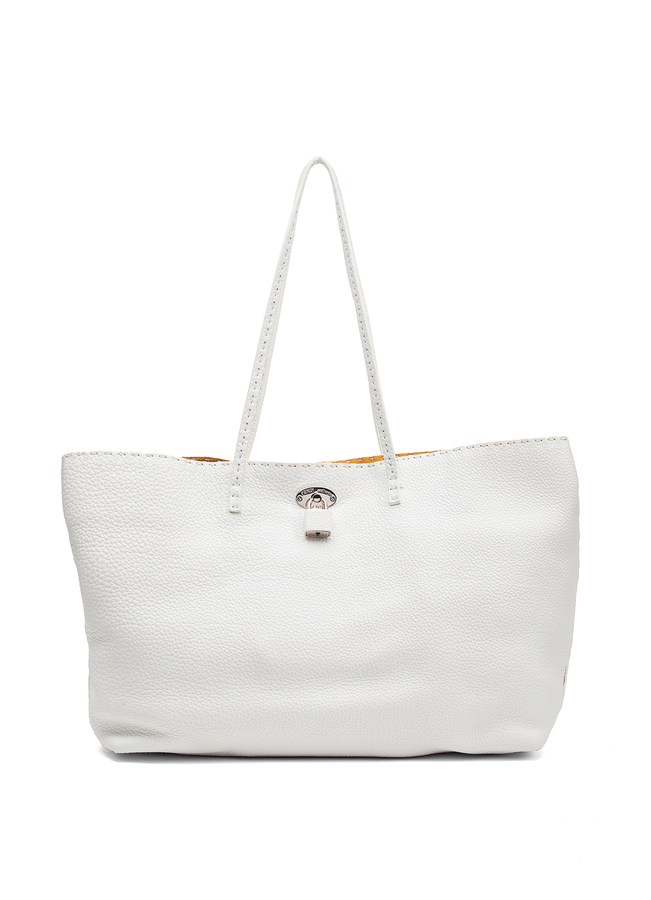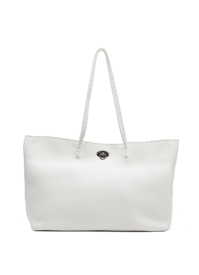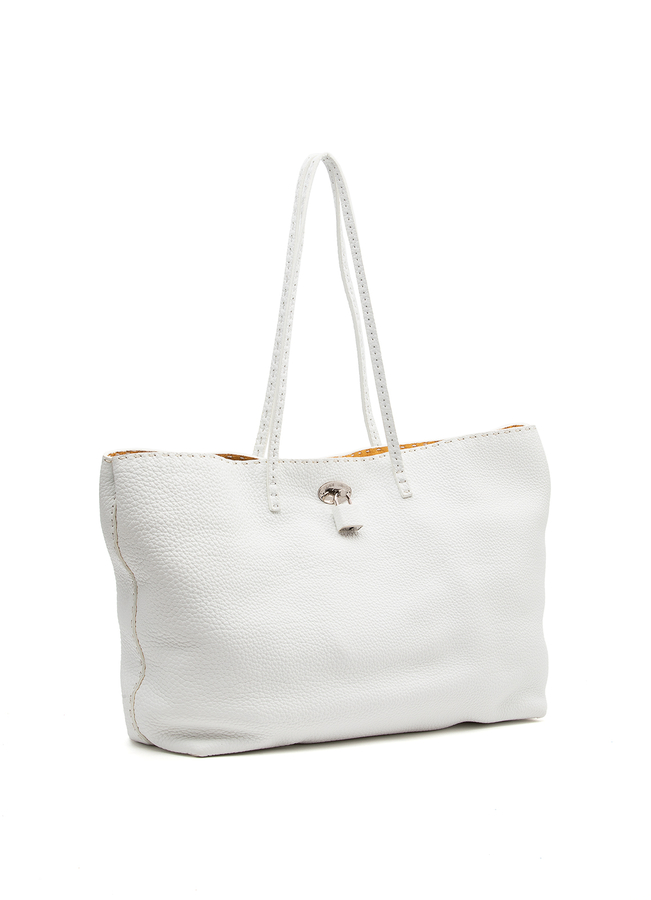 - Кожаная сумка Casta Tote Selleria с металлической застежкой в форме буквы. С двумя короткими ручками. Внутри одно большое отделение.
