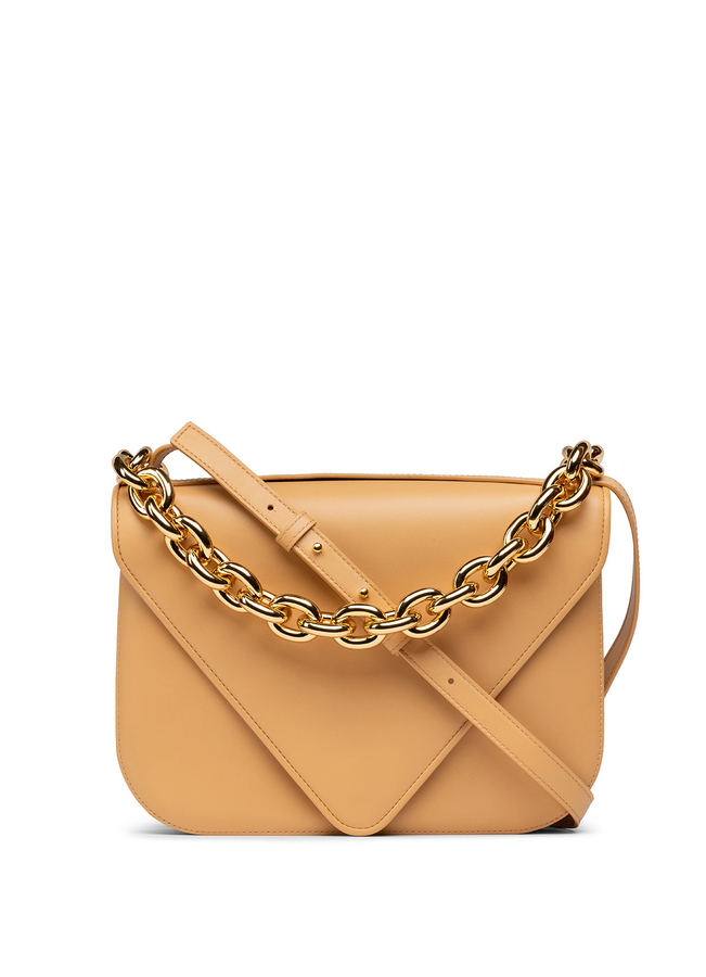 - Сумка-конверт Mount из матовой кожи с золотистой цепочкой. Форма конверт, съемный плечевой ремень, золотистая цепочка, внутренний карман, золотистая фурнитура, кожаная подкладка.