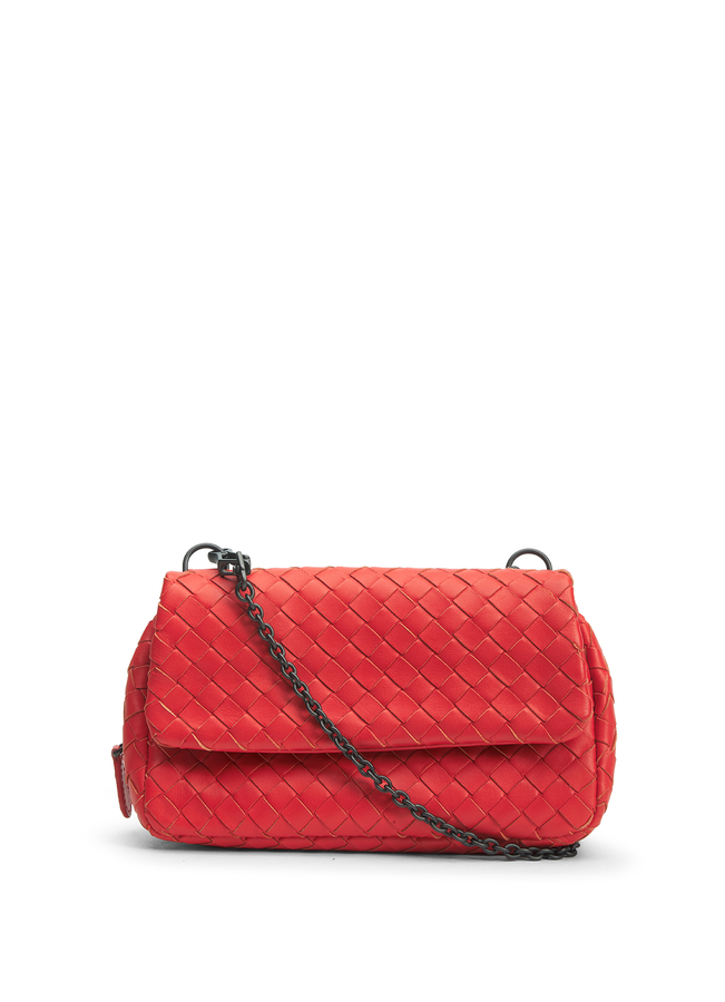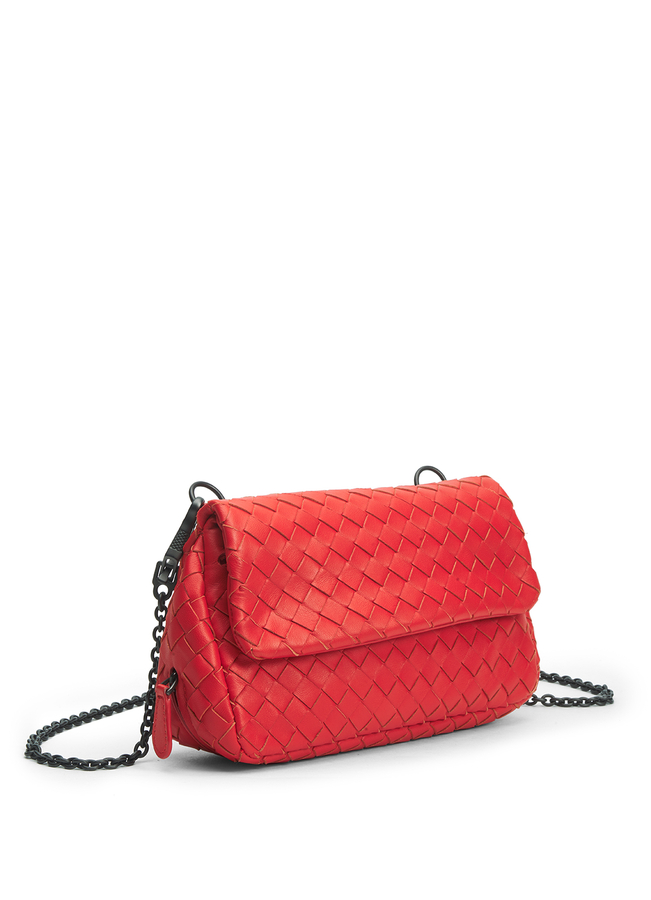 - Миниатюрная сумка-мессенджер, созданная из плетеной кожи наппа. Несколько карманов обеспечивают легкую организацию, компактный размер и ремешок-цепочка.