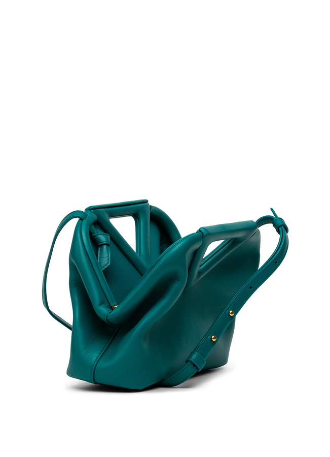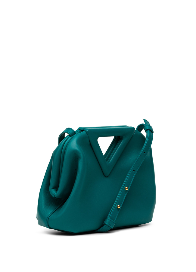- Кожаная сумка через плечо The Triangle. Треугольной формы вырезные детали, застежка на кнопки, регулируемый ремень на плечо и основное отделение.