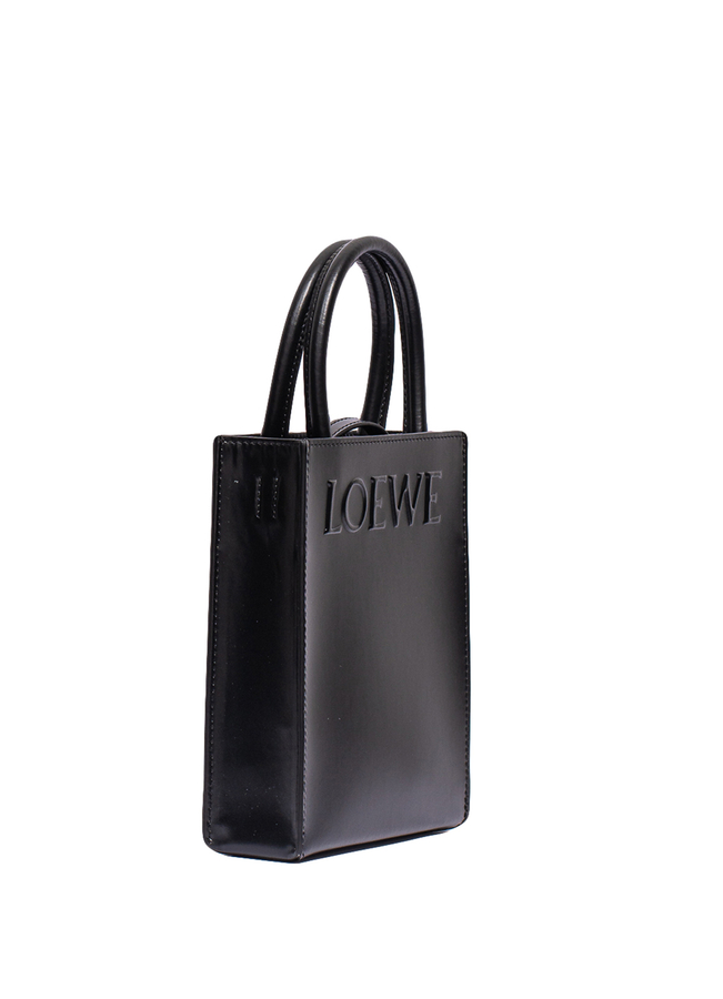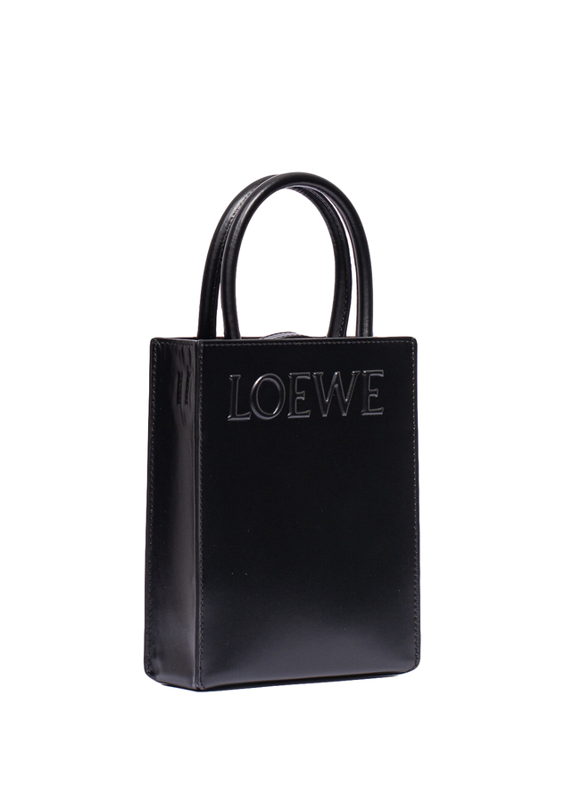- Кожаная сумка Tote имеет конструкцию конверта на основе, можно носить за верхние ручки или с помощью регулируемого съемного плечевого ремня. Имеет тисненый логотип LOEWE спереди. Есть внутренний накладной карман, хлопчатобумажная подкладка.